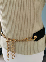 Ceinture chaîne 80's en textile noir et chaînette dorée. Les mesures sont approximatives. Taille 36/38.