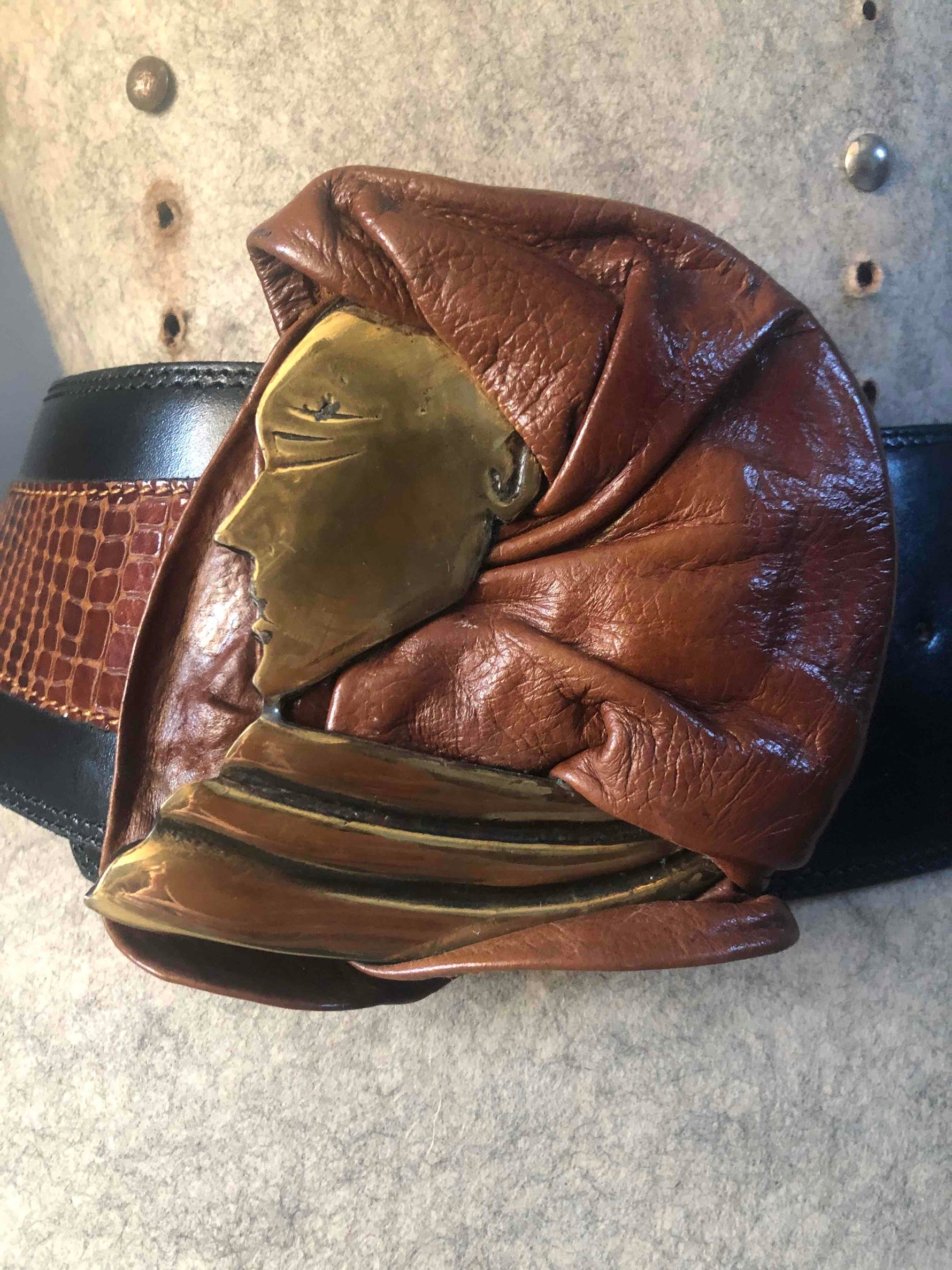 Boucle cuir et métal doré.
