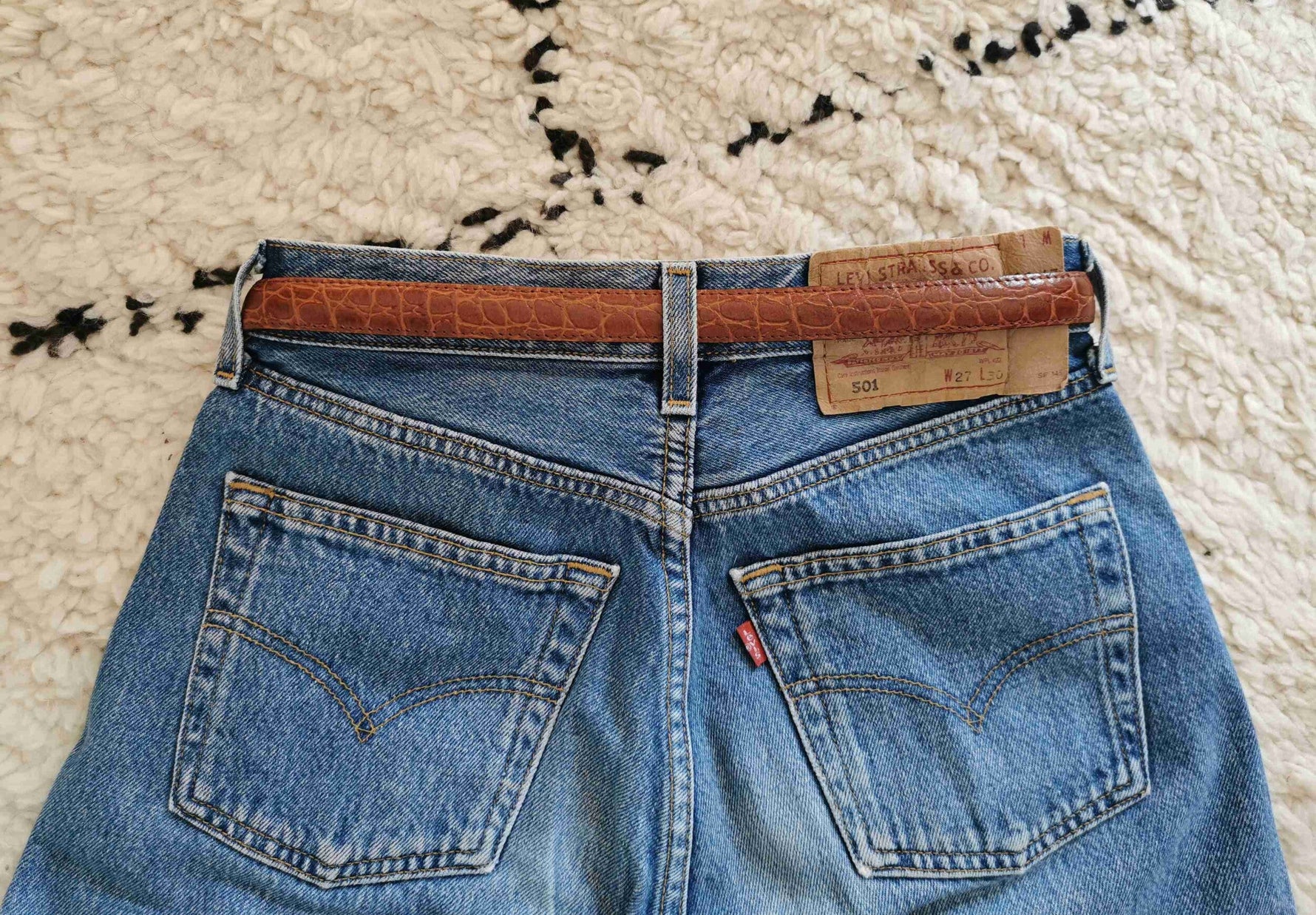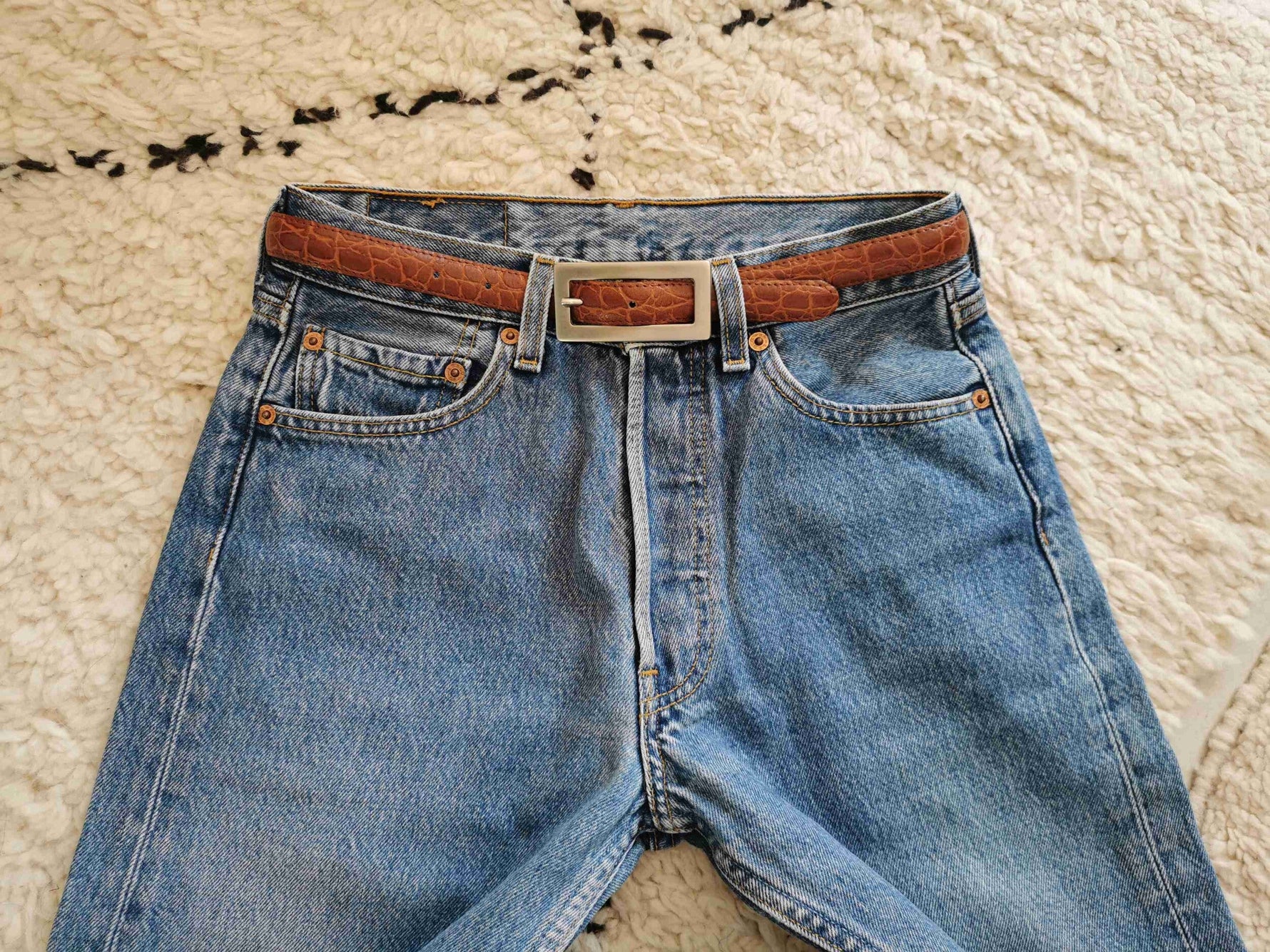 Prix unitaire parCeinture en cuir imprimé croco marron moyen