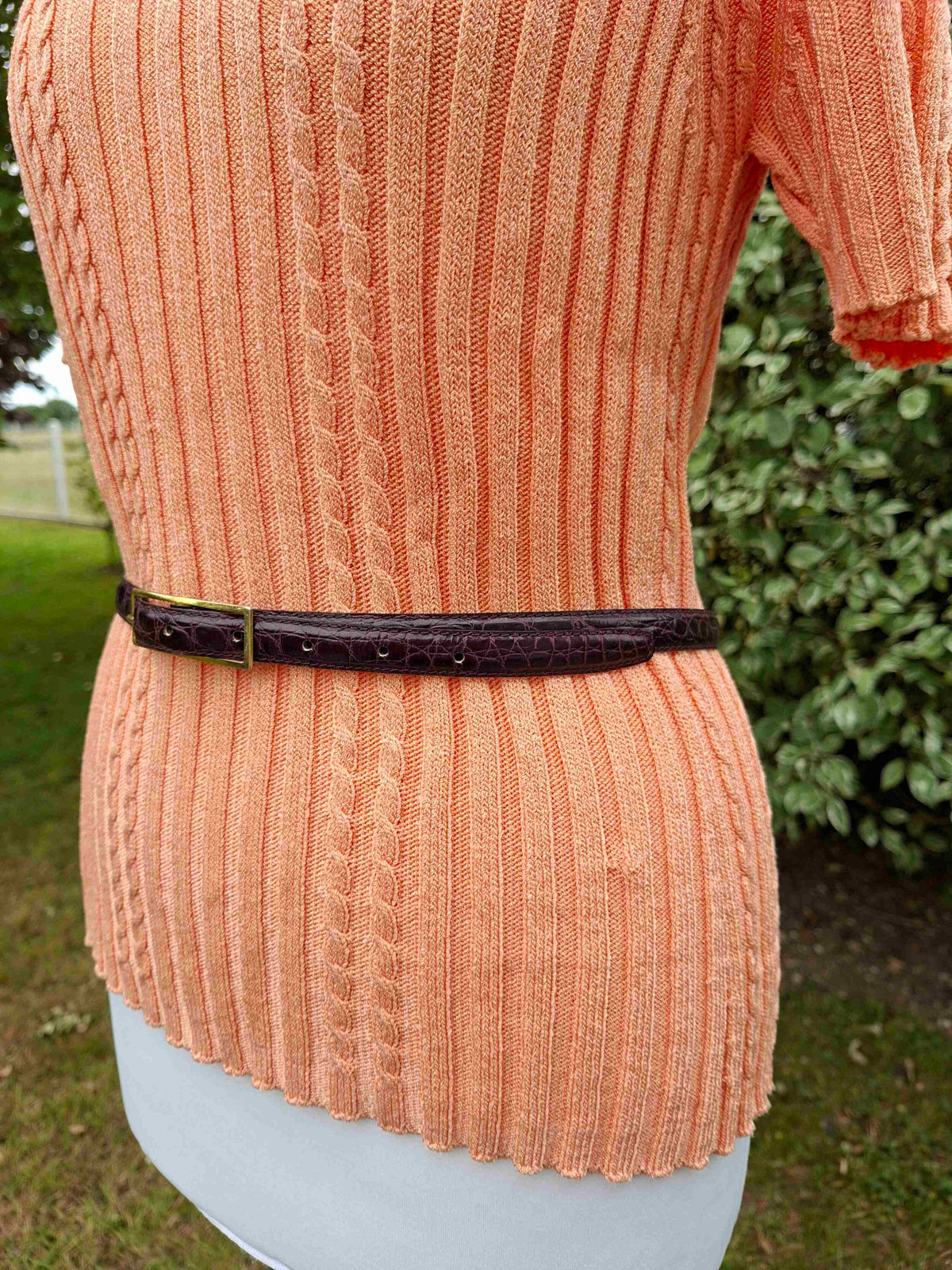 Prix unitaire parCeinture en cuir de veau imprimée croco bordeaux