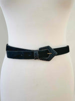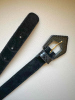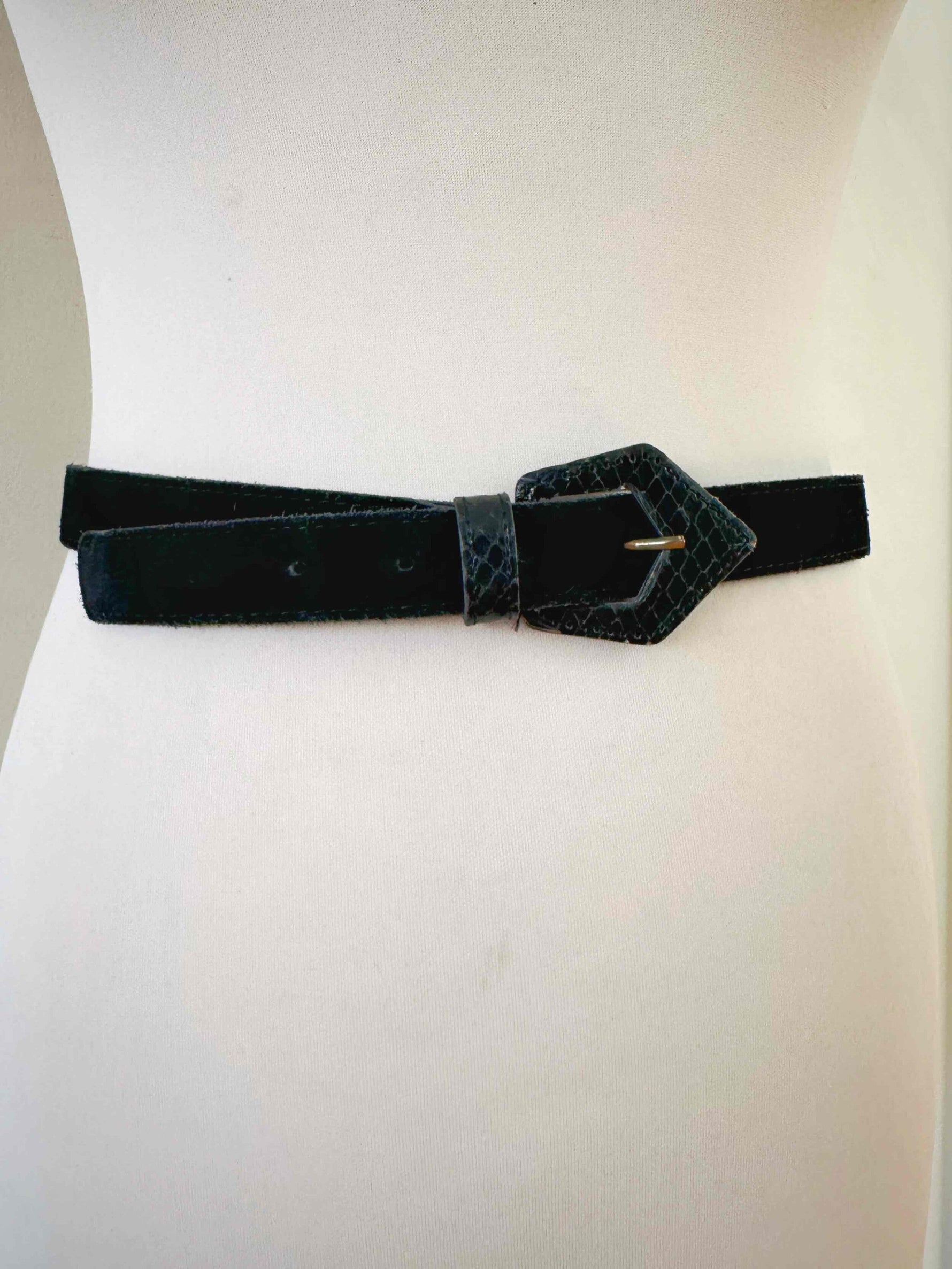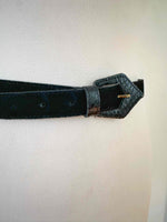 Ceinture wild en daim, noir, passants et boucle en cuir reptile python noir, ceinture jeans à porter taille, largeur 2,5 cm, taille 75, taille 36. Fabriquée en France.