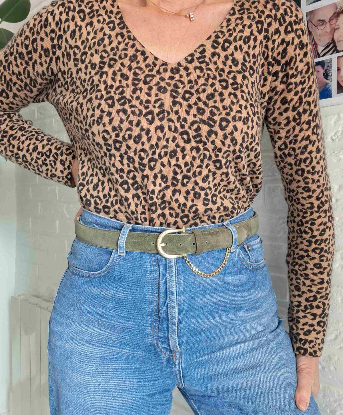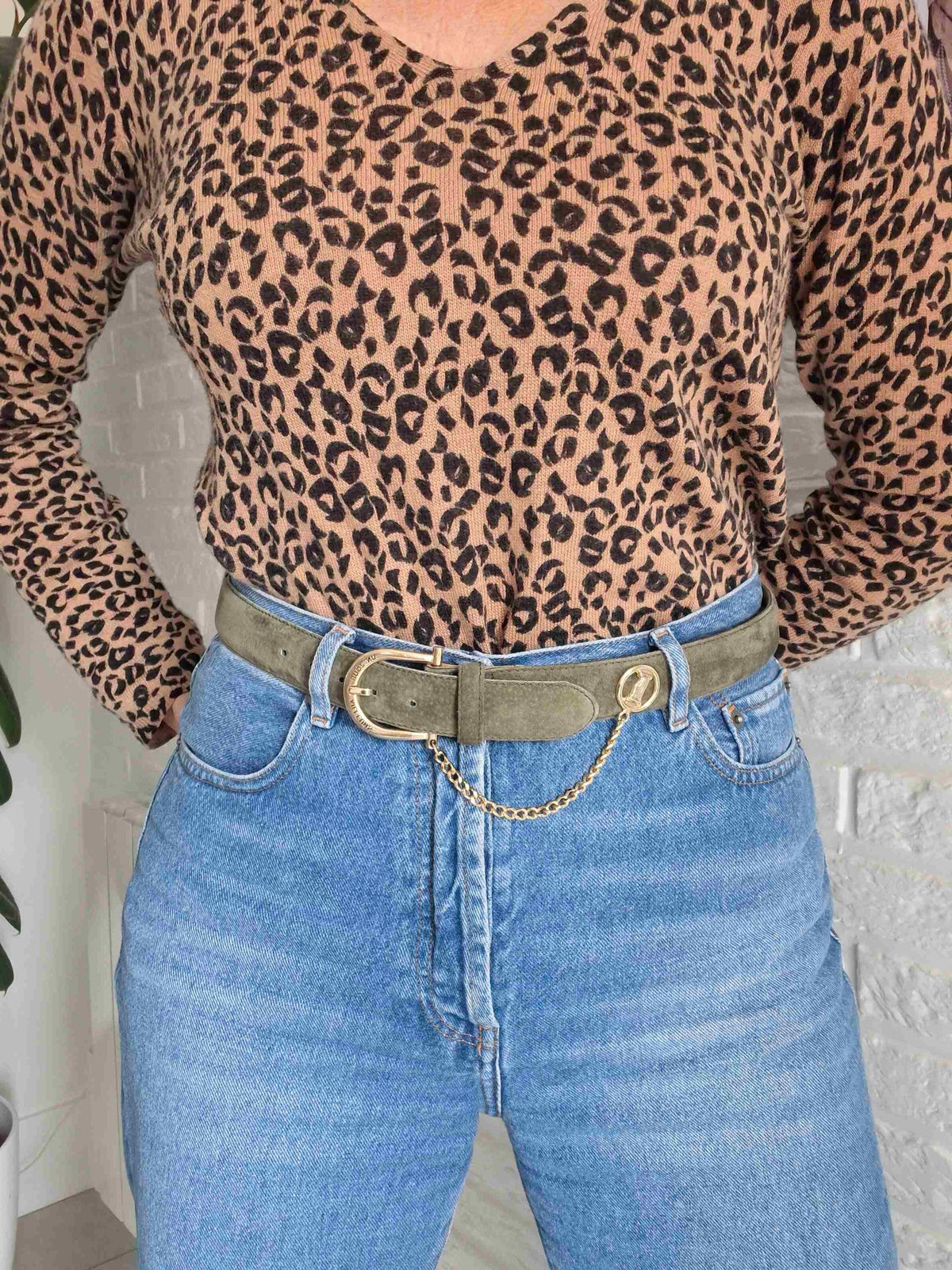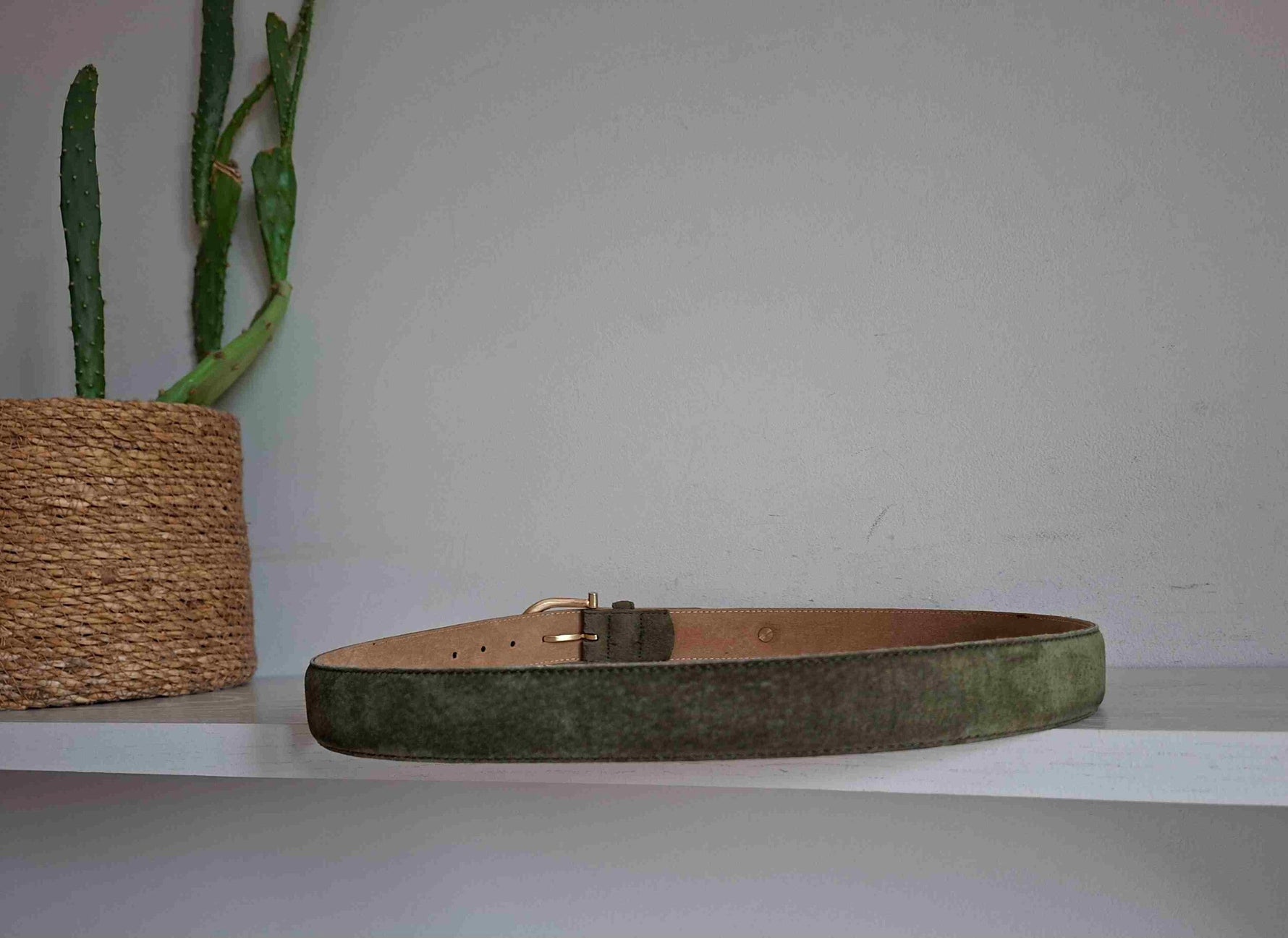 Prix unitaire parCeinture en daim vert kaki et boucle chaînette dorée Made in France
