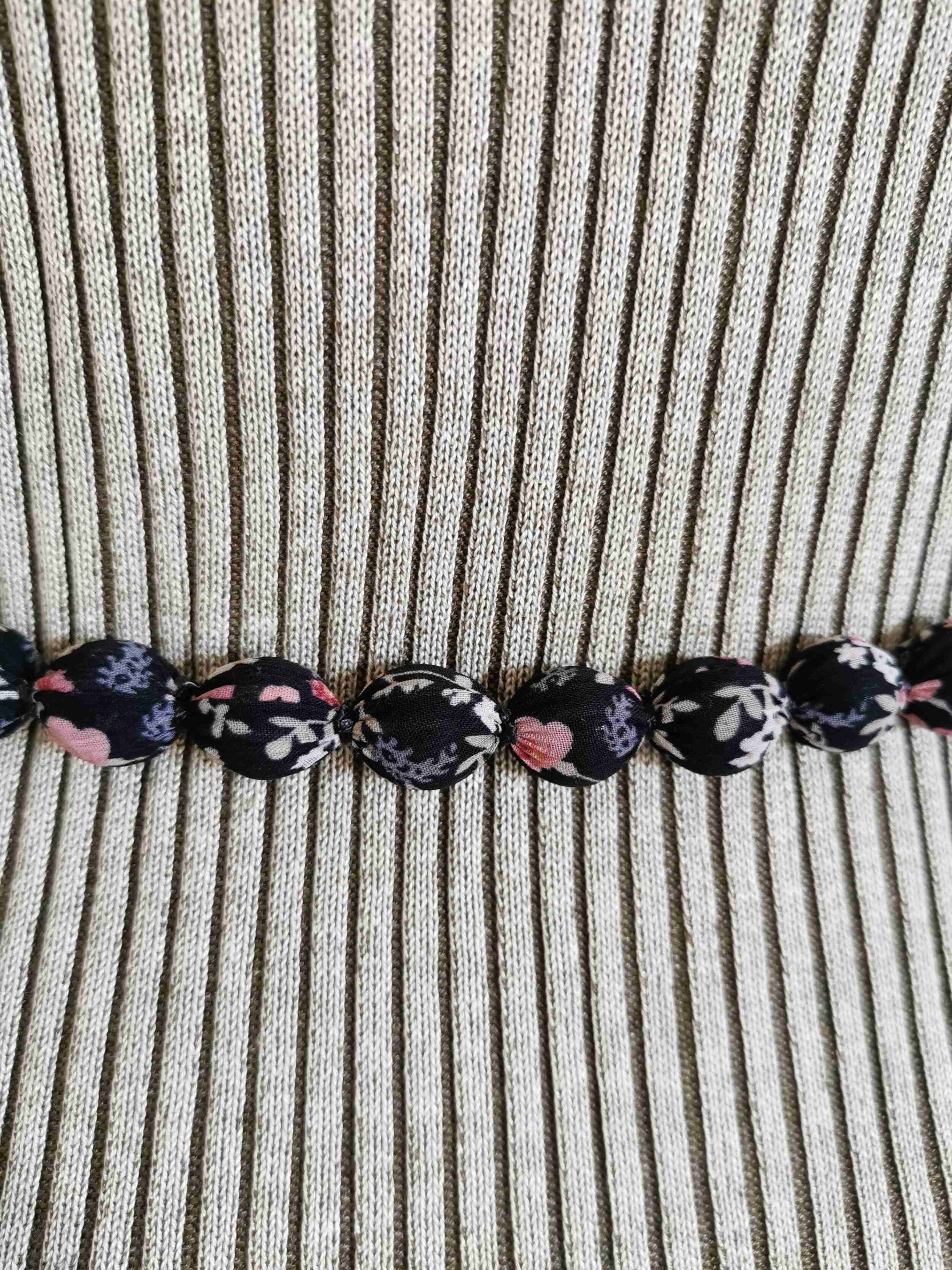 Tissu noir et perles au motif floral rose, mauve, beige