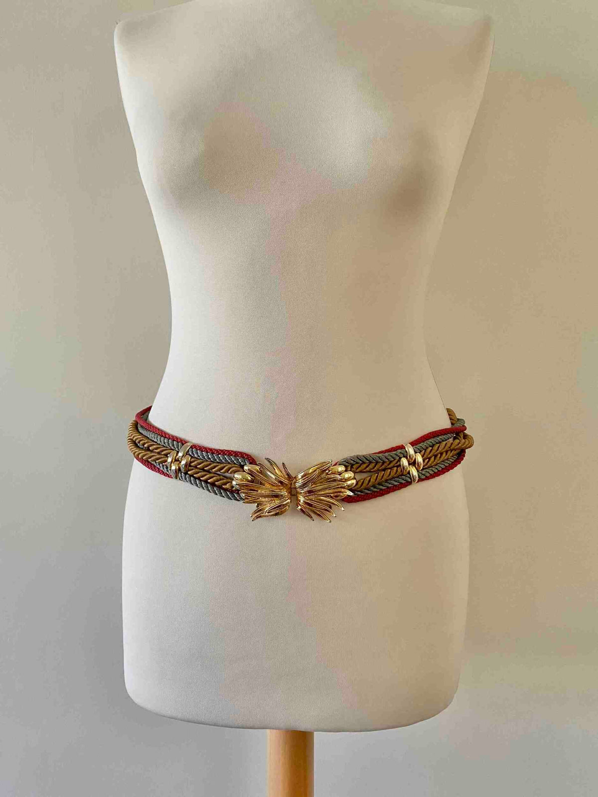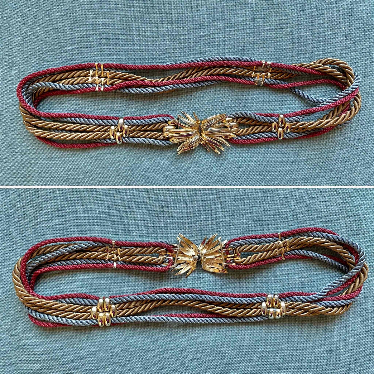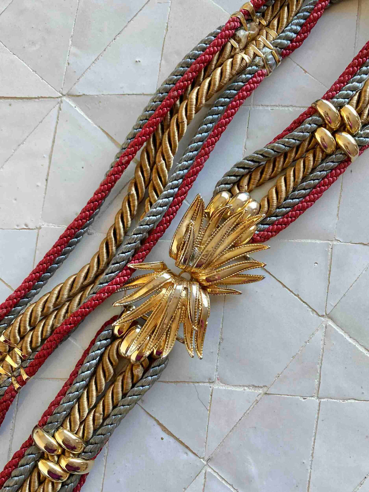 Prix unitaire parCeinture Passementerie Bijoux à cordons torsadés ocres, bordeaux et gris, bouclerie dorée palmier, ceinture de taille, taille 38