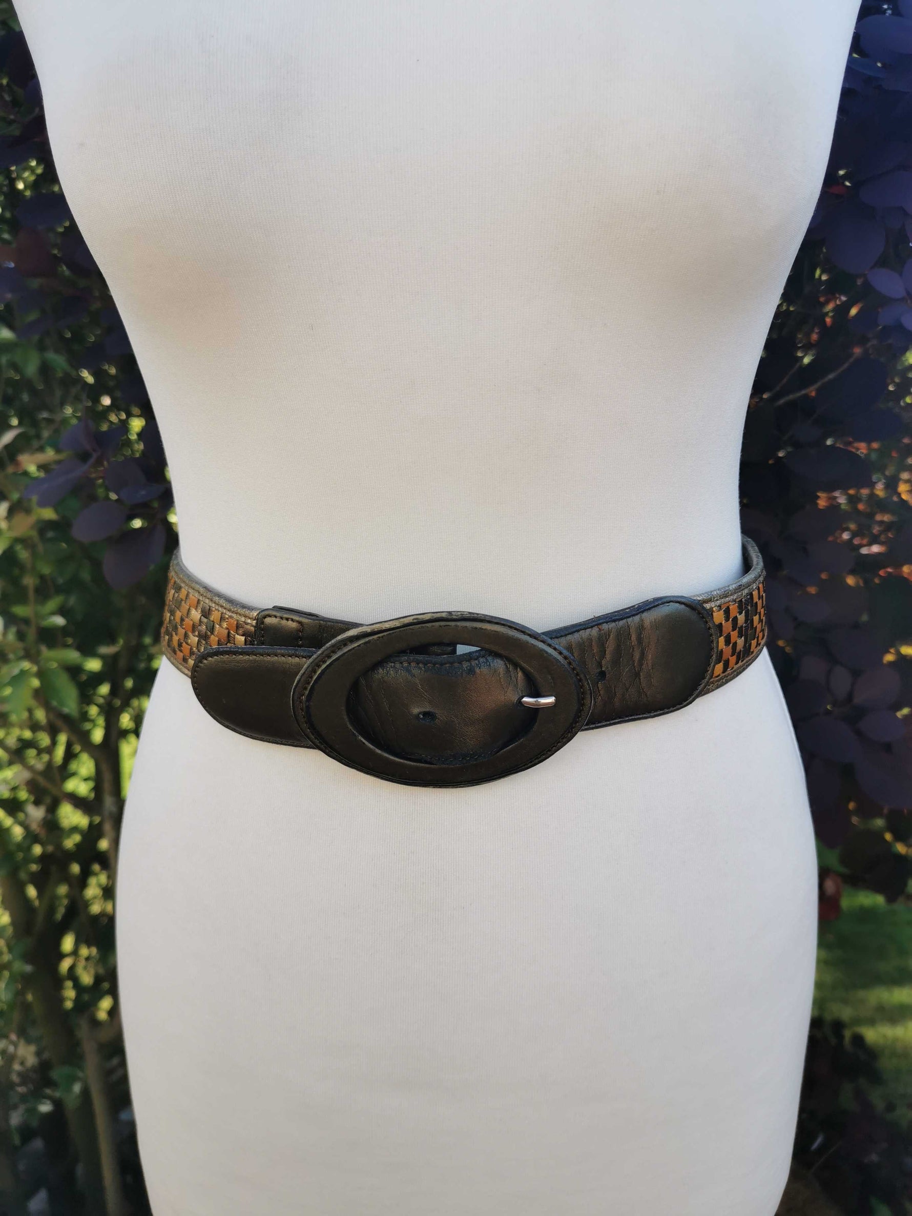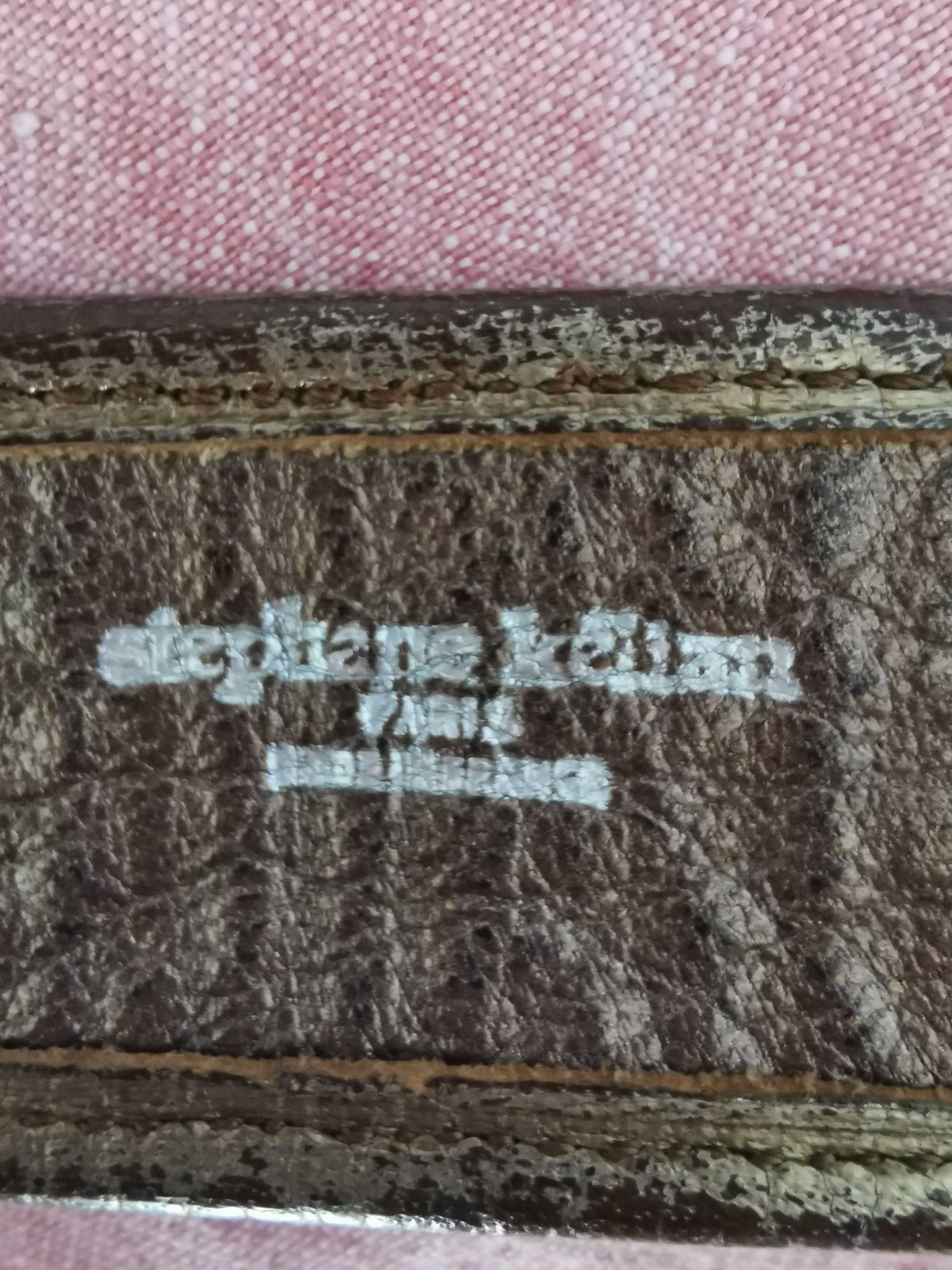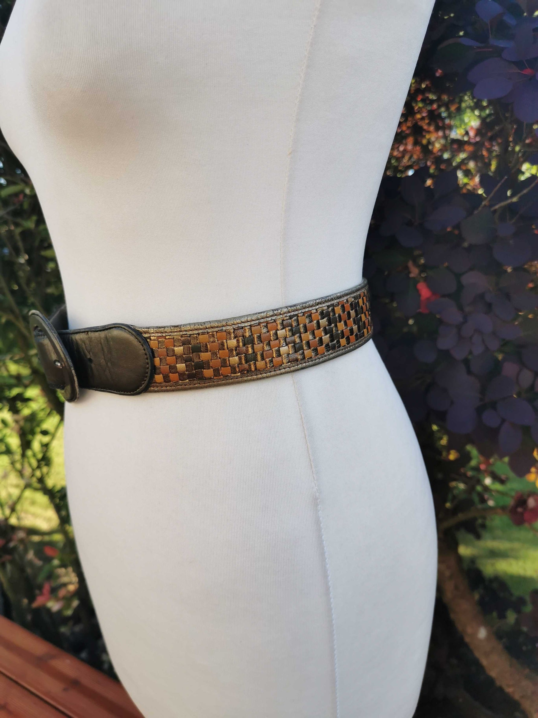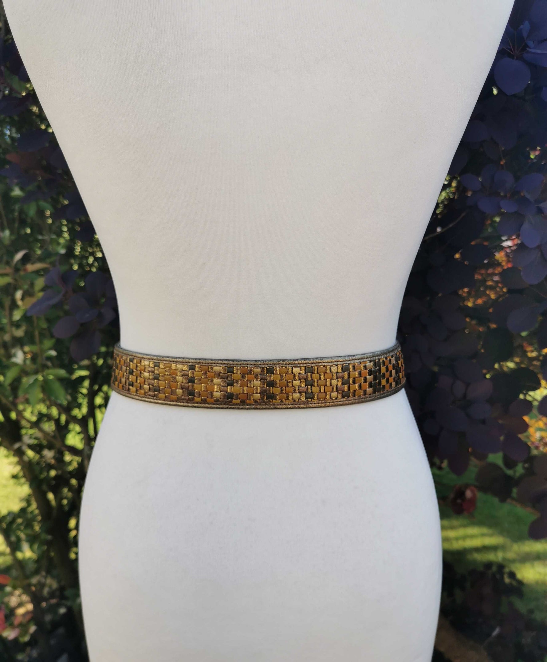 Prix unitaire parCeinture en cuir tressée Stéphane Kélian. Made in France. Couleur kaki mordoré. Taille 34,36,38.