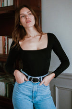 Notre body Cléo est de retour dans sa version automnale. Une encolure carrée qui sublime le décolleté, un dos nu croisé graphique et féminin, le tout dans une viscose écologique douce et extensible qui épouse le corps comme une seconde peau. Sa culotte sans couture en microfibre garantit une invisibilité parfaite sous tous vos bas, pour un confort absolu du matin au soir.
