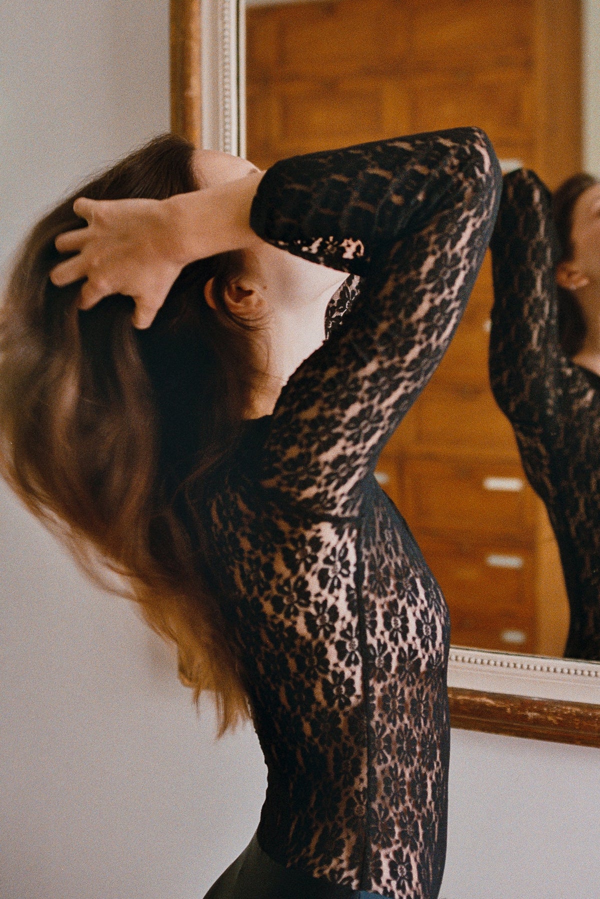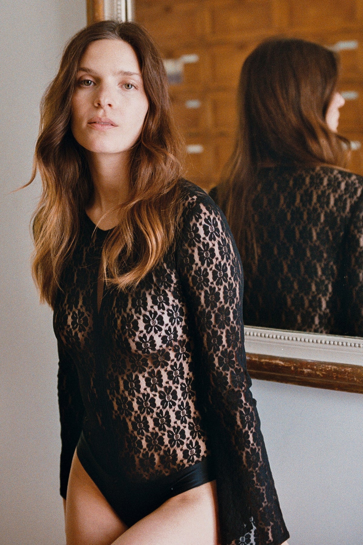 La troisième déclinaison de notre collection black lace est là : le body Juliette que vous aimez tant, son col fendu sensuel et féminin et ses manches évasées, associé à notre nouvelle dentelle fleurie tout en délicatesse.