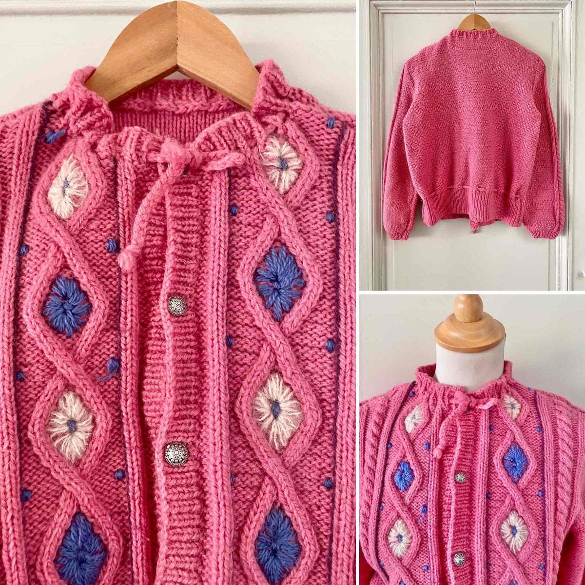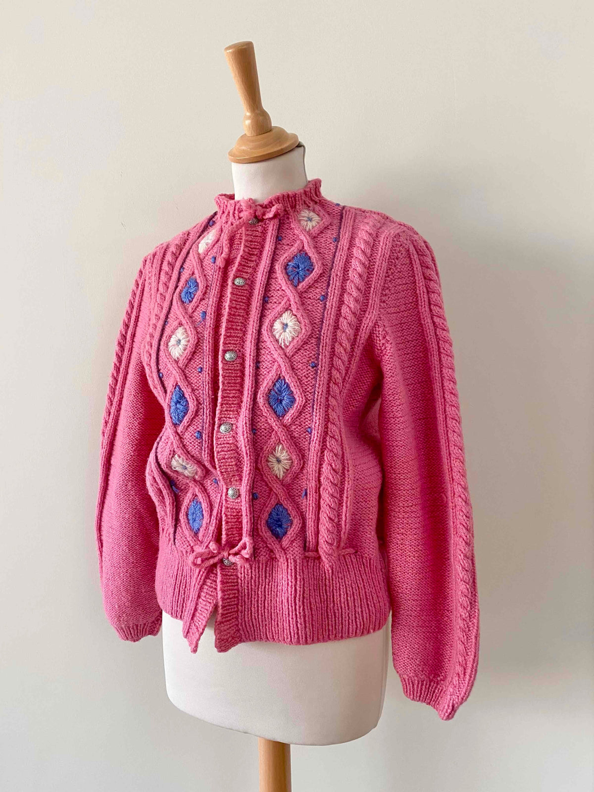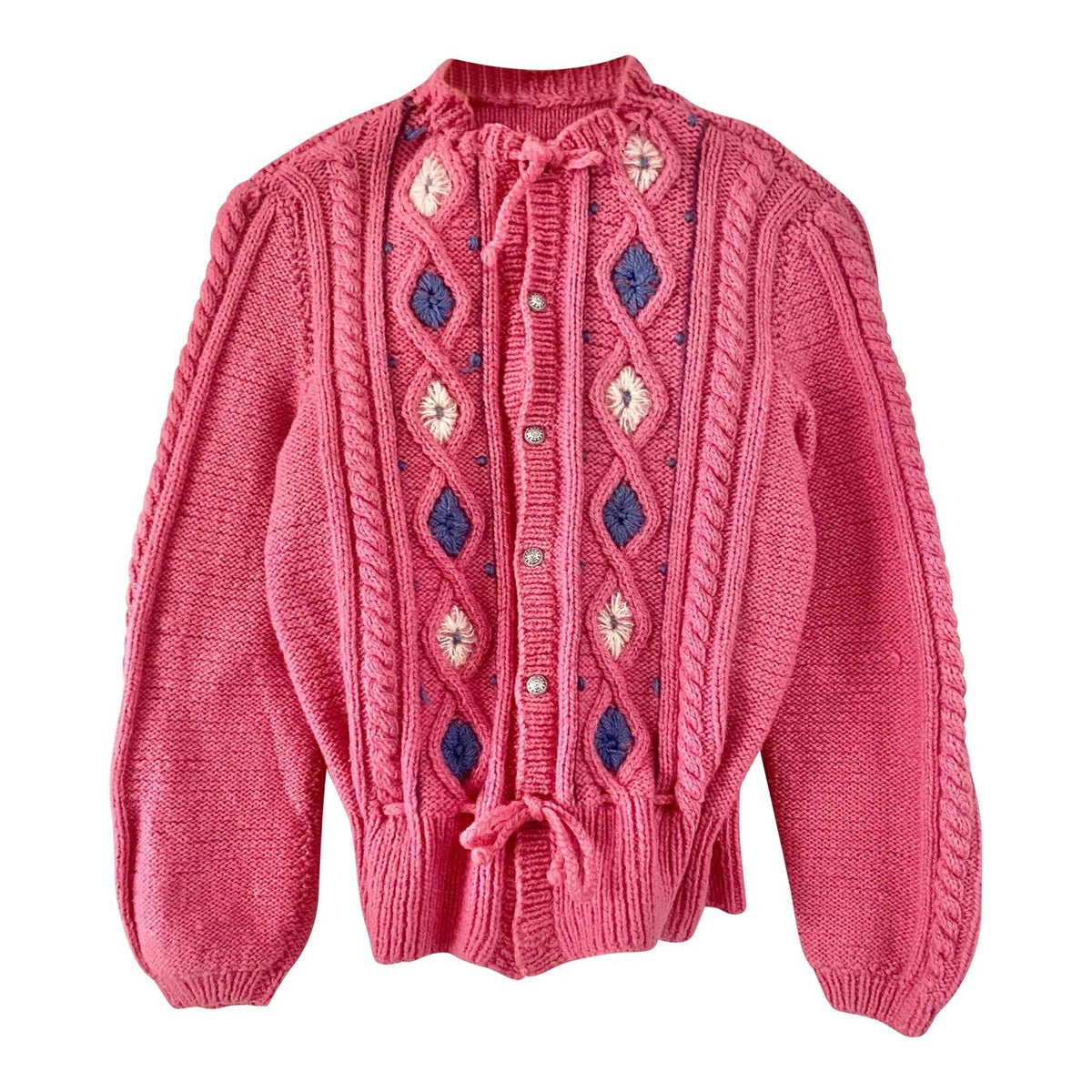 Prix unitaire parCardigan autrichien en pure laine rose bonbon.