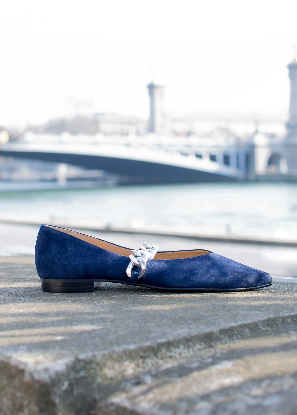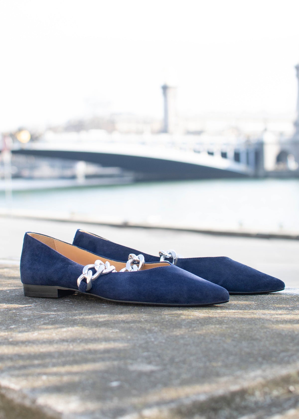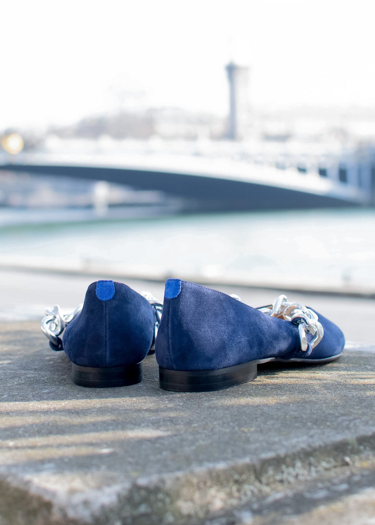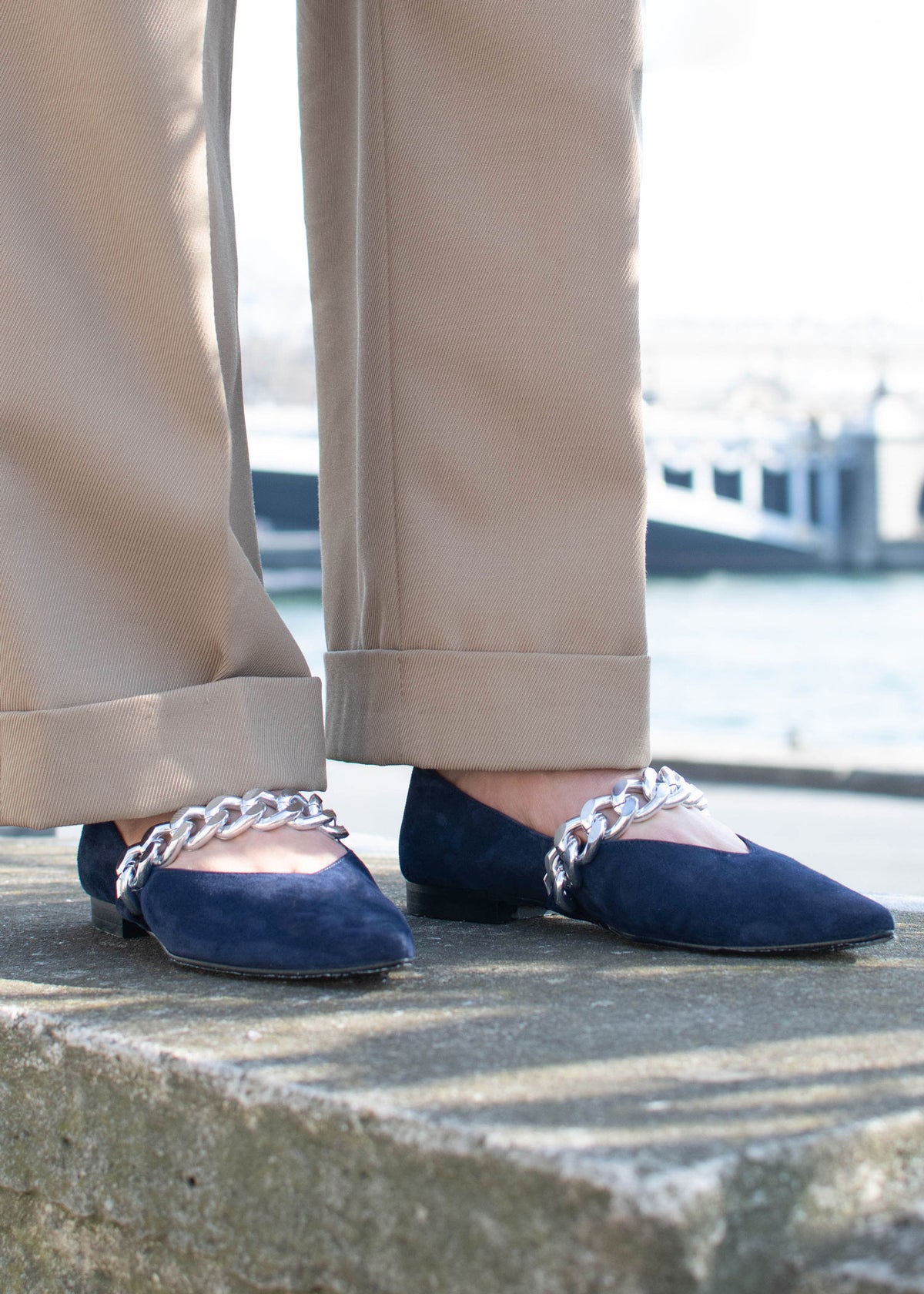 Slippers Pointus Amédée Chain - Daim - Bleu - Femme