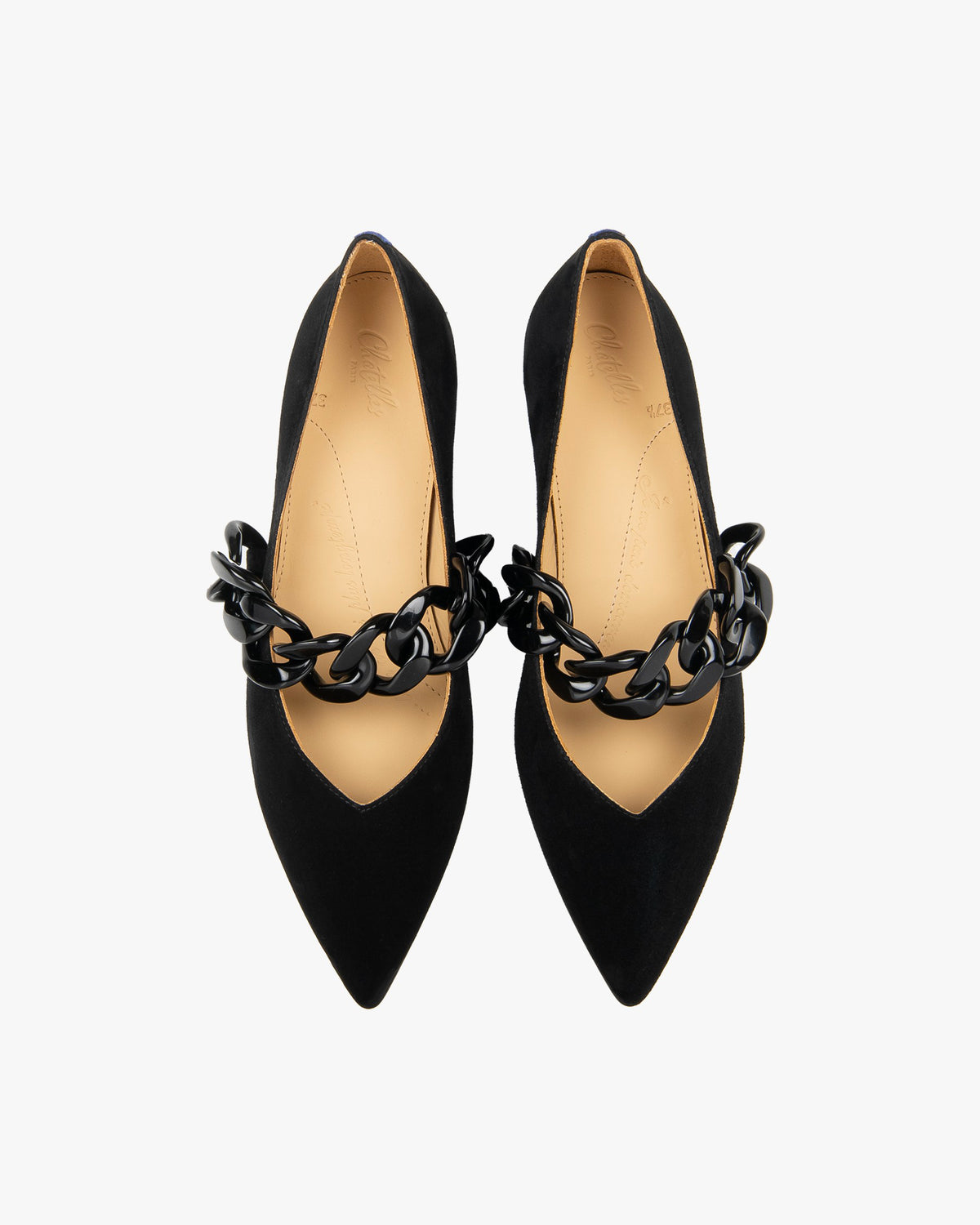 Slippers Pointus Amédée Chain - Daim - Noir - Femme
