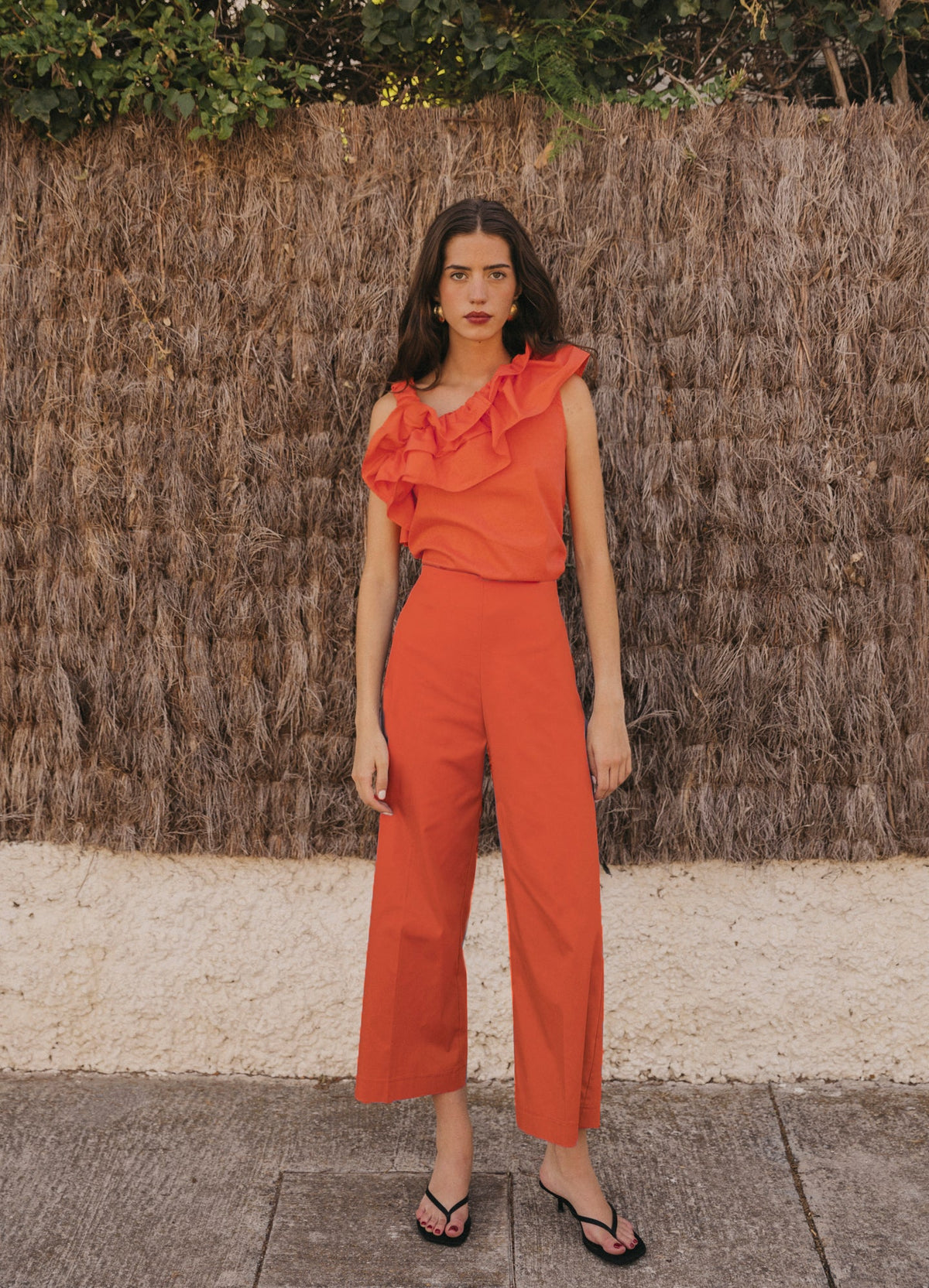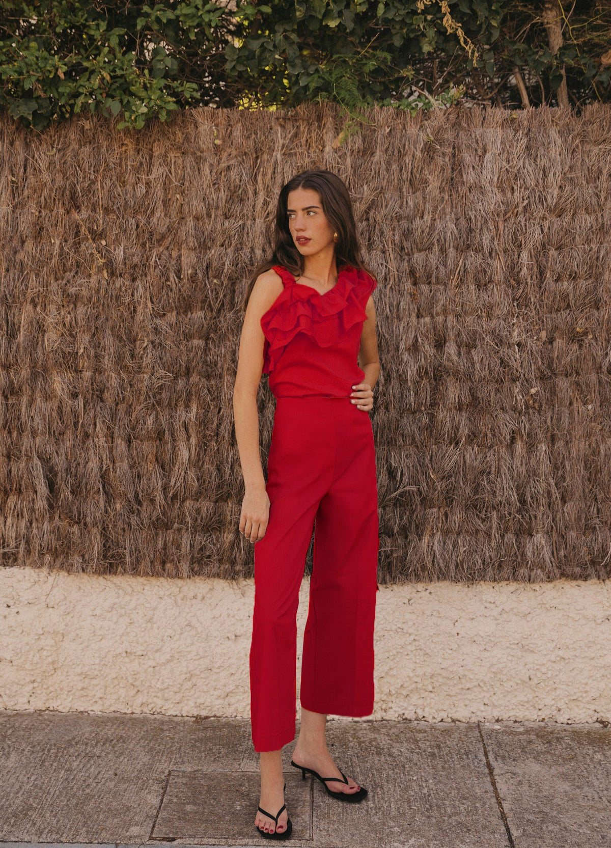 Pantalón tobillero de pierna recta con raya, sin cinturilla para un diseño minimalista y moderno. Cuenta con cierre lateral con cremallera invisible que aporta comodidad y estilo. Perfecto para combinar con el top Portofino.