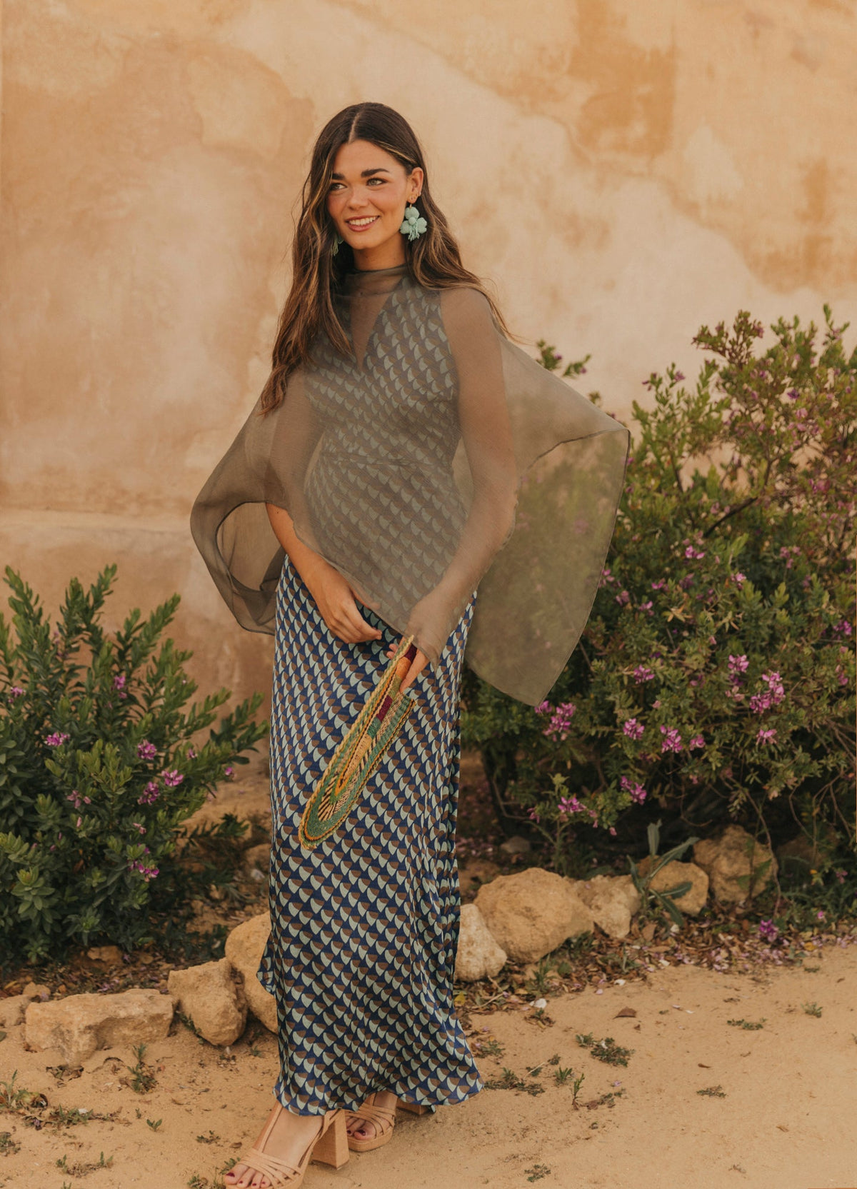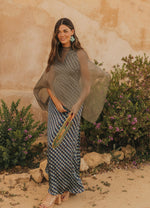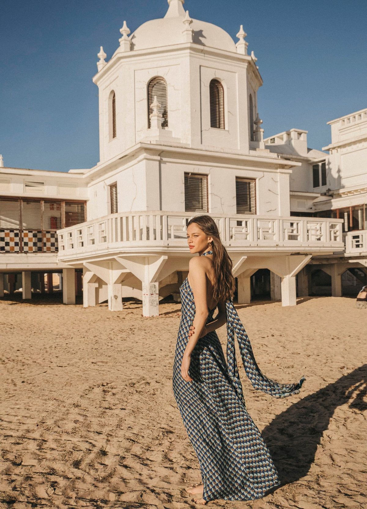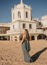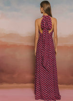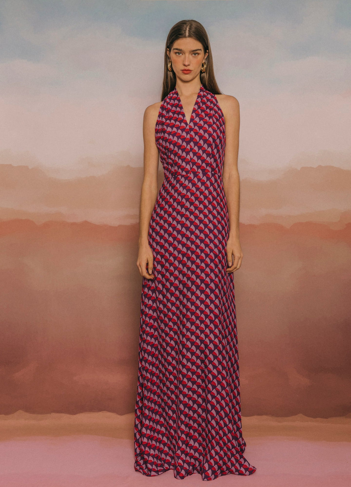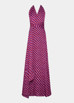 Vestido largo confeccionado en tejido fluido con un favorecedor estampado. Su diseño con tiras multiposición permite jugar con el escote y la espalda para adaptarlo a cada estilo o momento: palabra de honor, halter, asimétrico, cruzado… tú decides. Cintura definida, falda evasé con abertura central y cierre trasero con cremallera invisible. Completamente forrado para un acabado impecable.