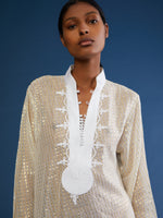 The Aziza silk kaftan is a luxurious fusion of Moroccan craftsmanship. Crafted from exquisite Italian silks, each kaftan is meticulously handmade by skilled artisans in Morocco. The flowing silhouette and lightweight fabric make it perfect for transitioning seamlessly from beach parties to chic soirées at home.