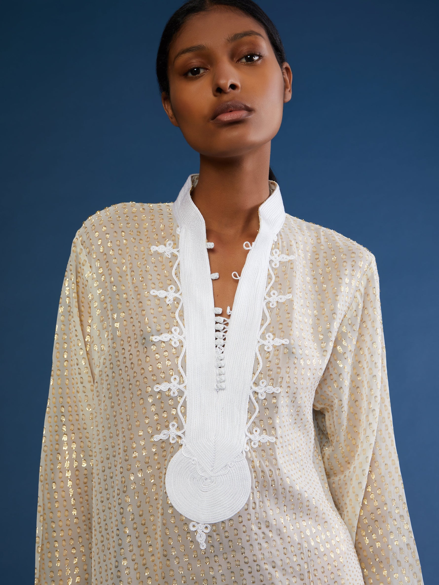 - White and gold with white embroidery