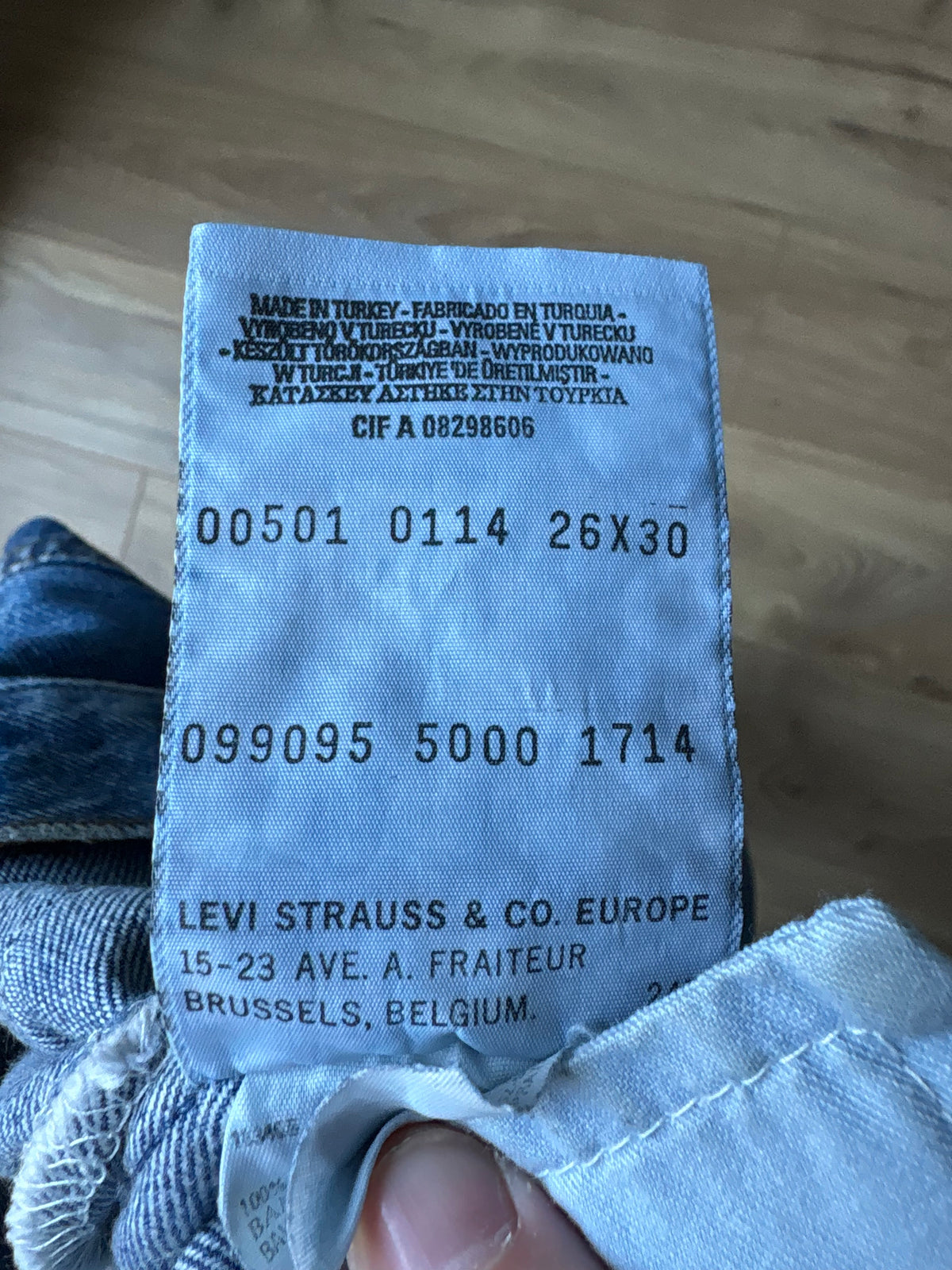 Prix unitaire parJean Levi's 501 vintage 26W 30L d'une qualité premium. Largeur des hanches : 44cm ; Longueur : 96cm ; Longueur entrejambe : 72cm ; Taille : 35cm. Etat : très bon état Couleur : bleu Matière : 100% coton Défauts : petite tache sur l'une des jambes (voir photo) Le colis est emballé et envoyé avec soin (193)