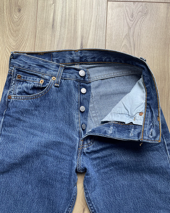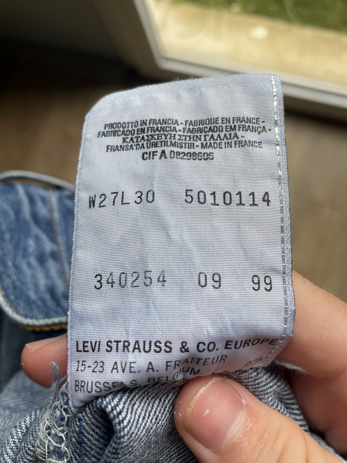 Prix unitaire parJean Levi's 501 vintage 27W 30L d'une qualité premium. Les ourlets sont d’origine. Largeur des hanches : 42cm ; Longueur : 95cm ; Longueur entrejambe : 71cm ; Taille : 36cm Etat : très bon état Couleur : bleu Matière : 100% coton Le colis est emballé et envoyé avec soin (109)