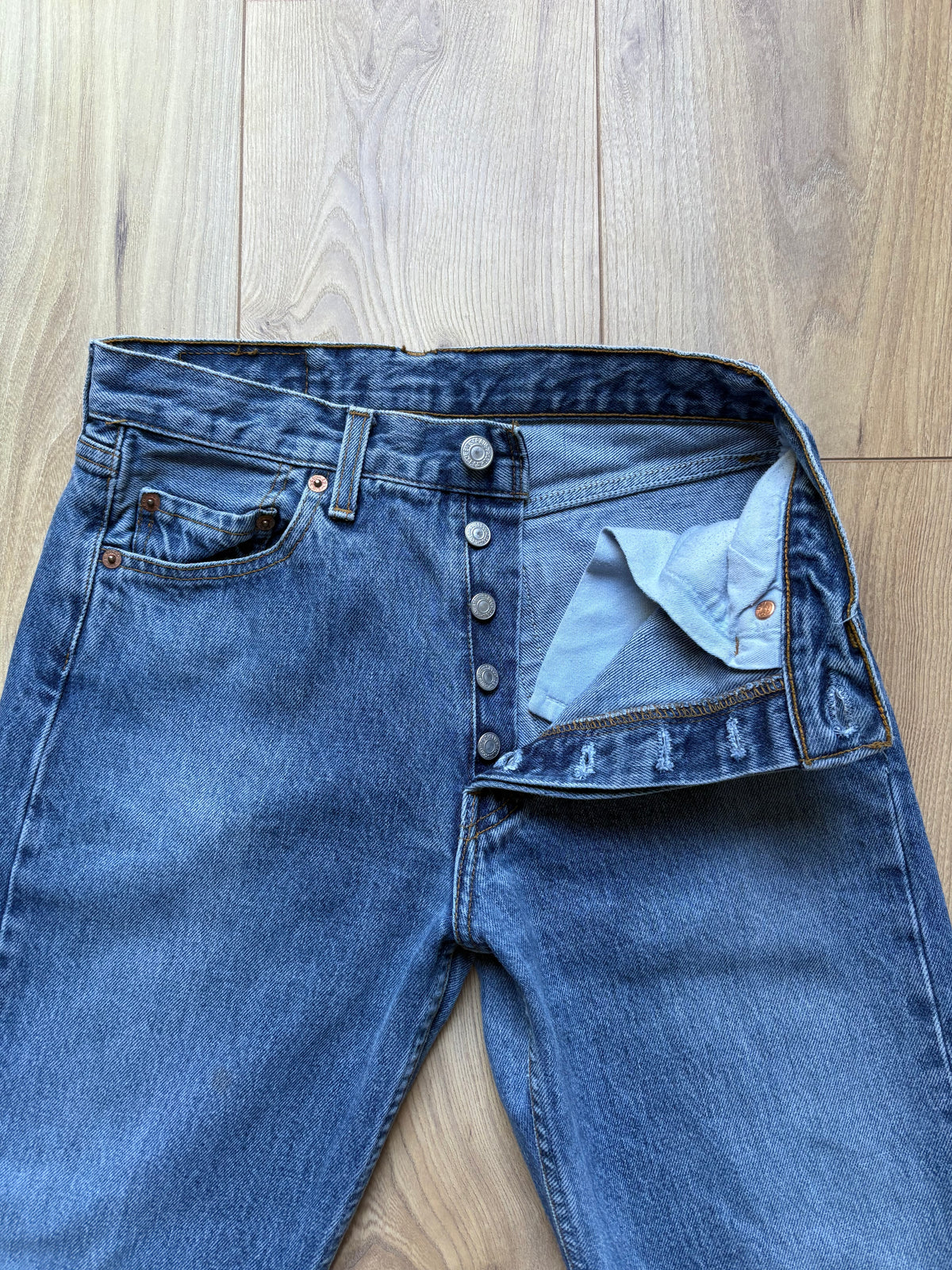 Prix unitaire parJean Levi's 501 vintage 29W 30L d'une qualité premium. Largeur des hanches : 43cm ; Longueur : 89cm ; Longueur entrejambe : 64cm ; Taille : 36cm. Etat : très bon état Couleur : bleu Matière : 100% coton Défauts: Légère tache sur l'une des jambes N'hesitez pas à comparer les mesures avec vos jeans ! Le colis est emballé et envoyé avec soin. (186)