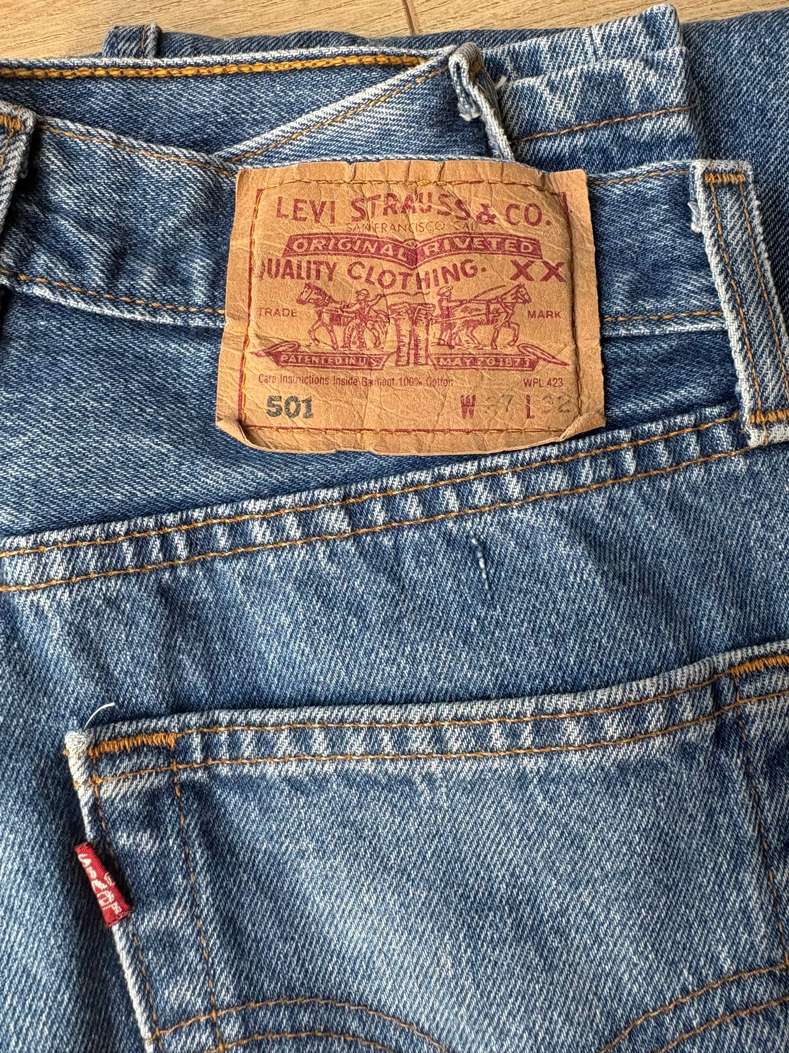 Prix unitaire parJean Levi's 501 vintage 27W 32L d'une qualité premium. Les ourlets sont d’origine. Largeur des hanches : 44cm ; Longueur : 103cm ; Longueur entrejambe : 77cm ; Taille : 34cm MADE IN USA Etat : très bon état Couleur : bleu Matière : 100% coton Le colis est emballé et envoyé avec soin (99)