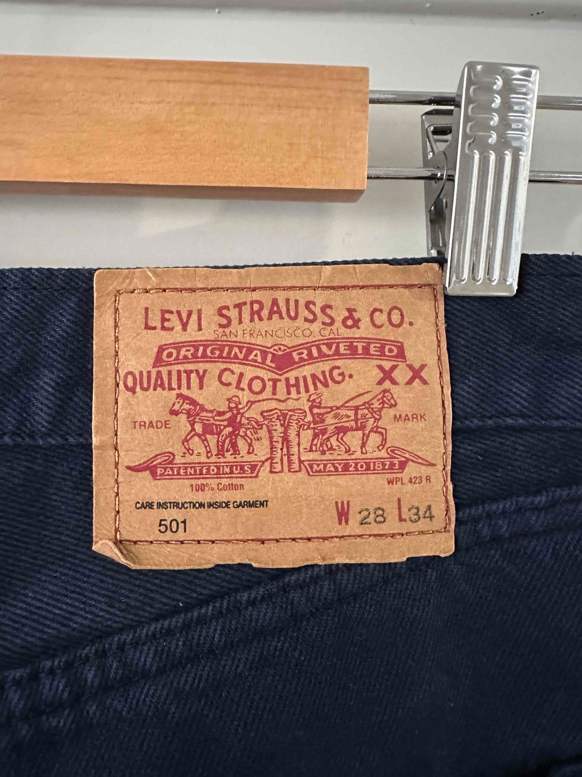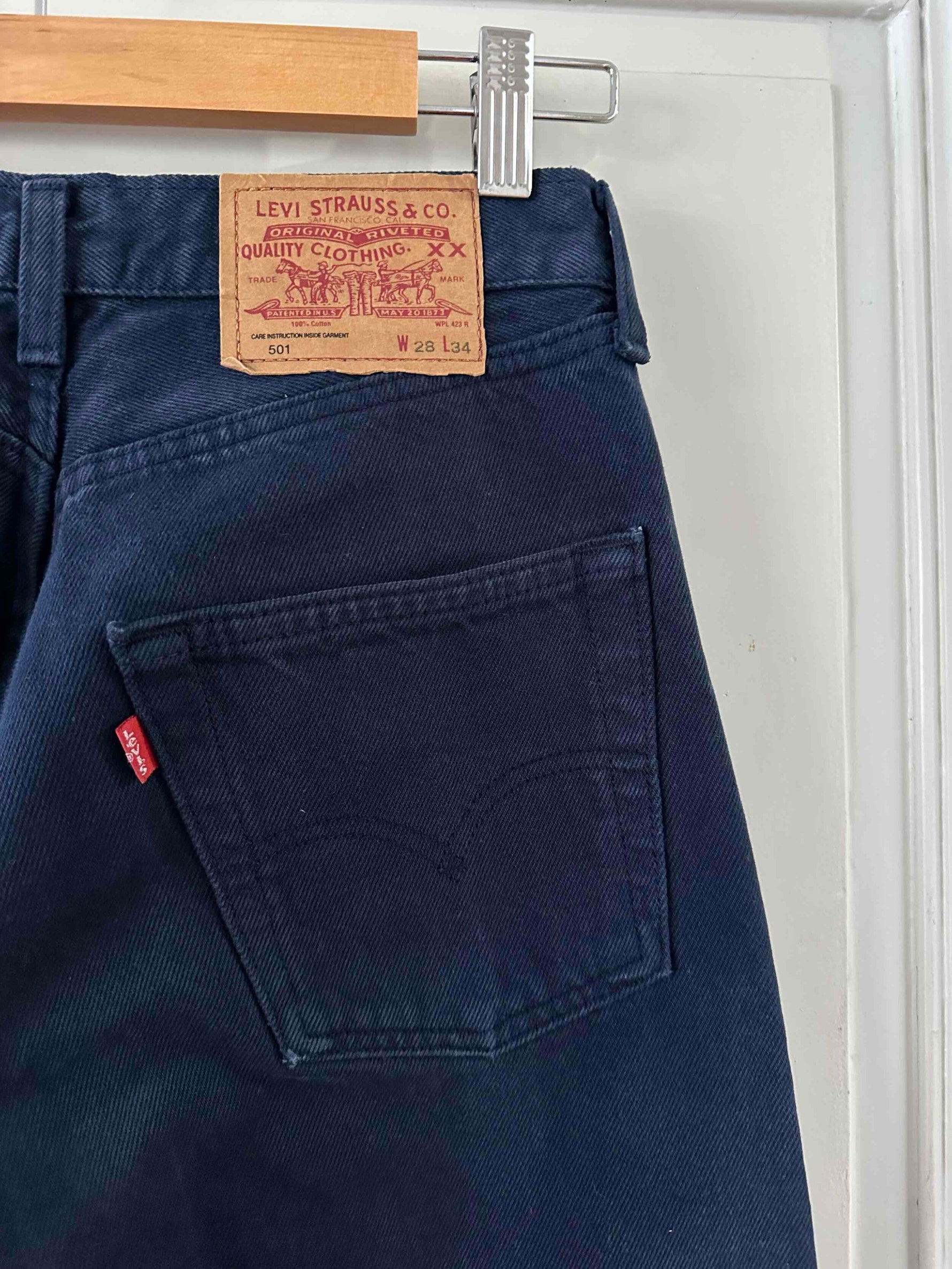 Jeans Levi's 501 W29 L34, teint en bleu marine.