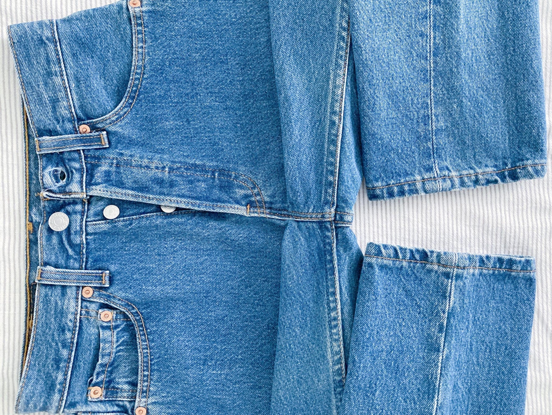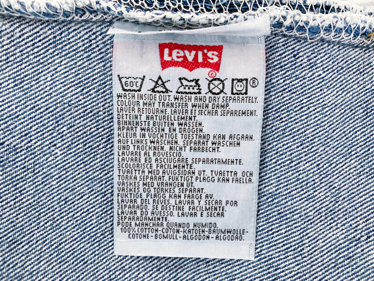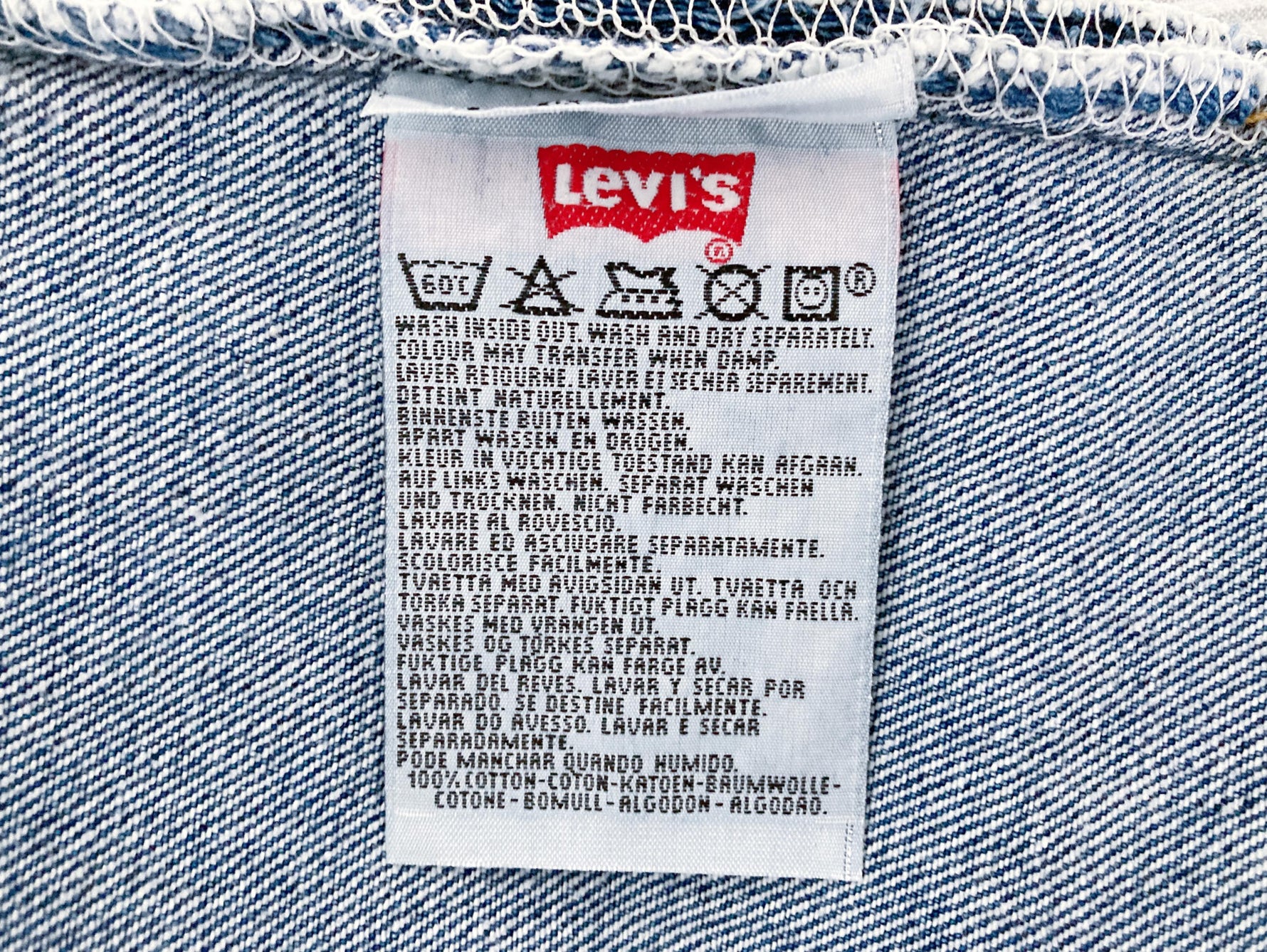 90s, coupe femme, bleu moyen, made in USA. Taille : 33 cm, Hauteur taille : 27,5 cm, Hanches : 49 cm, Cuisse : 26 cm, Longueur totale : 101,5 cm, Ourlets : 17 cm, Longueur entrejambe : 77,5 cm