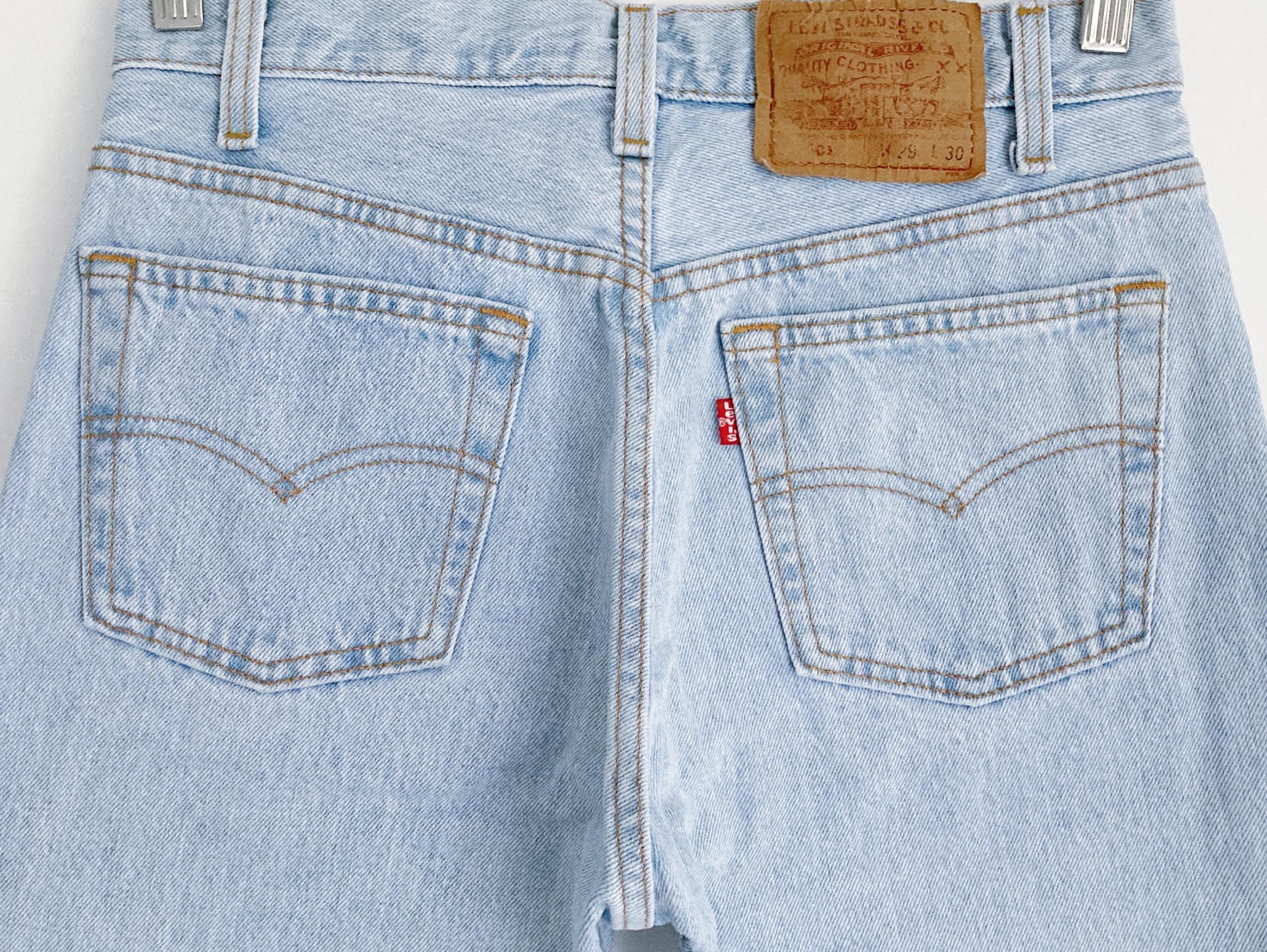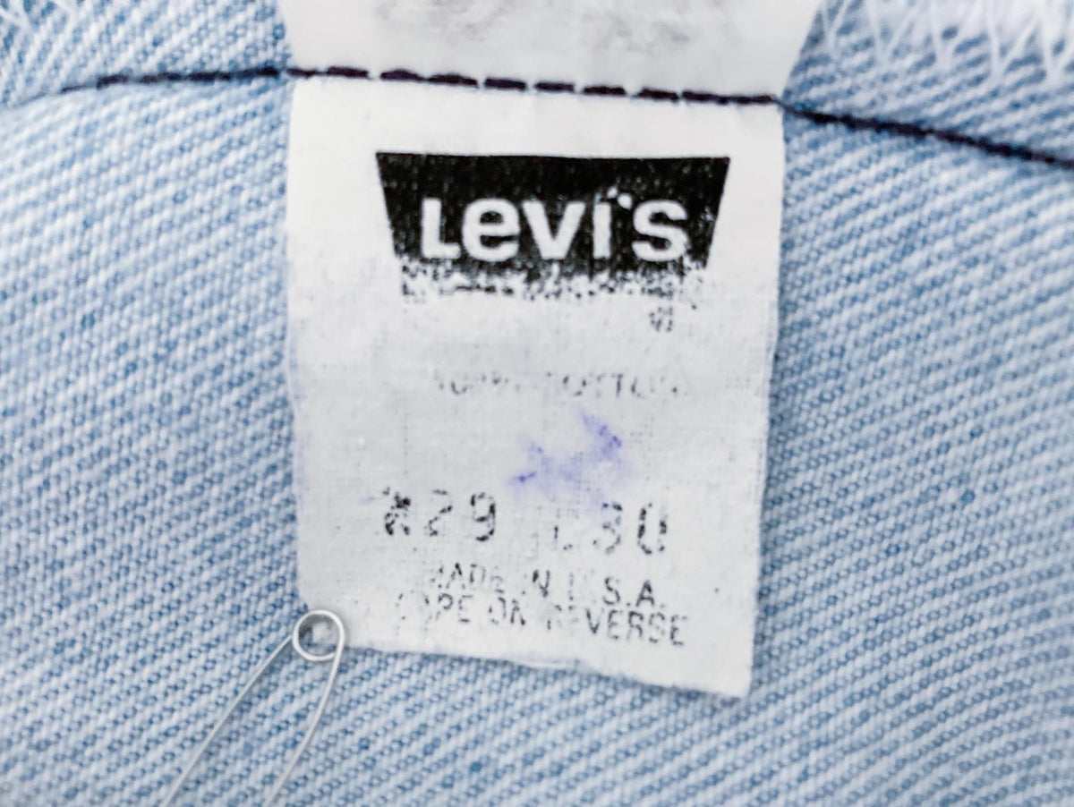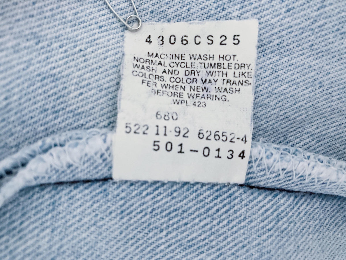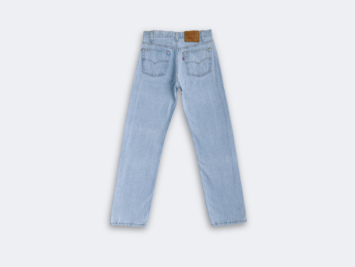 90s, bleu très clair, coupe mixte, made in USA. Taille : 37 cm, Hauteur taille : 28,5 cm, Hanches : 50 cm, Cuisse : 26,5 cm, Longueur totale : 100,5 cm, Ourlets : 19 cm, Longueur entrejambe : 76 cm