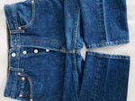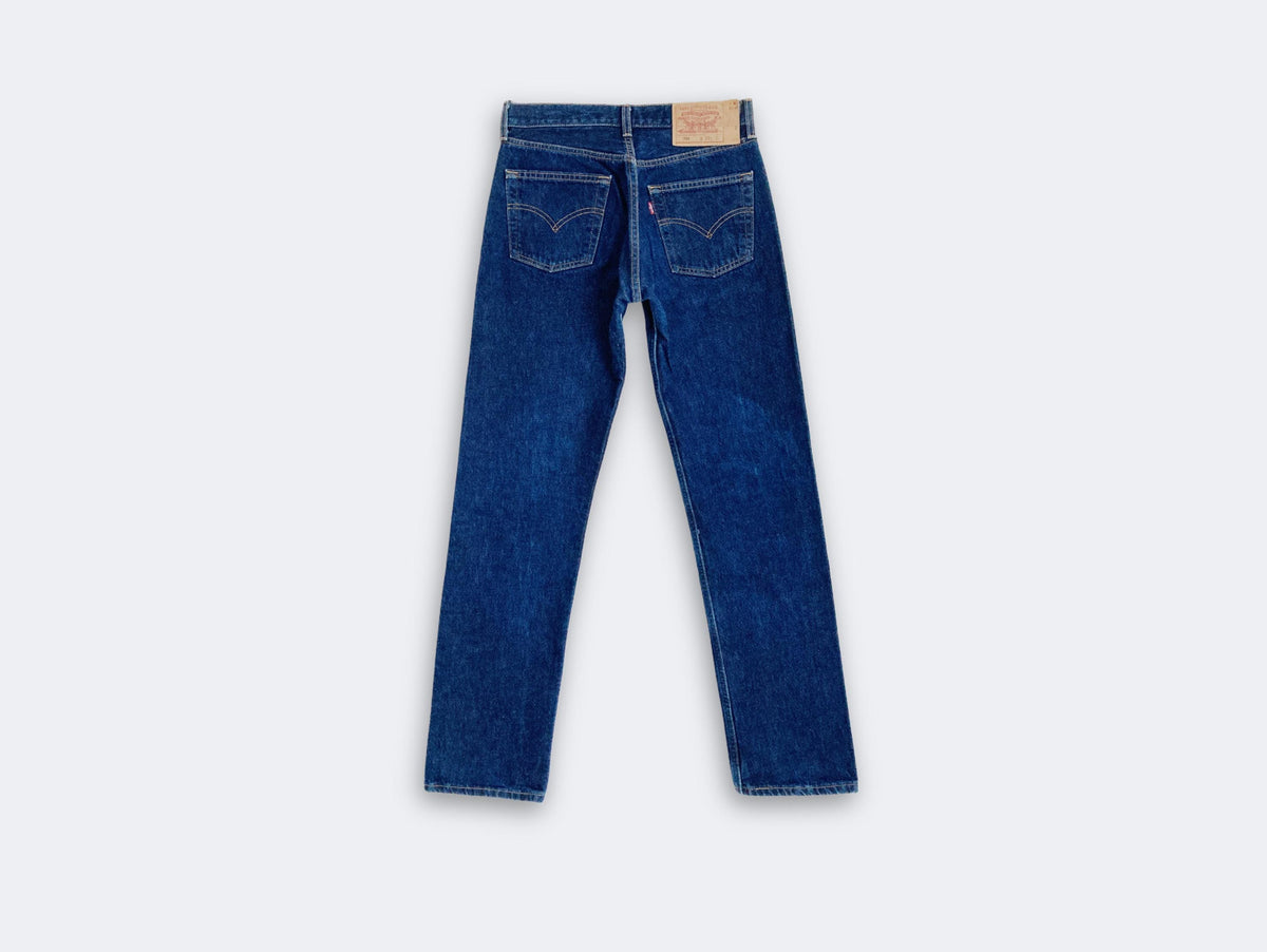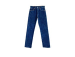 90s, coupe mixte, bleu foncé, made in Mexico. Taille : 36 cm, Hauteur taille : 28 cm, Hanches : 54,5 cm, Cuisse : 26,5 cm, Longueur totale : 103 cm, Ourlets : 19 cm, Longueur entrejambe : 80 cm