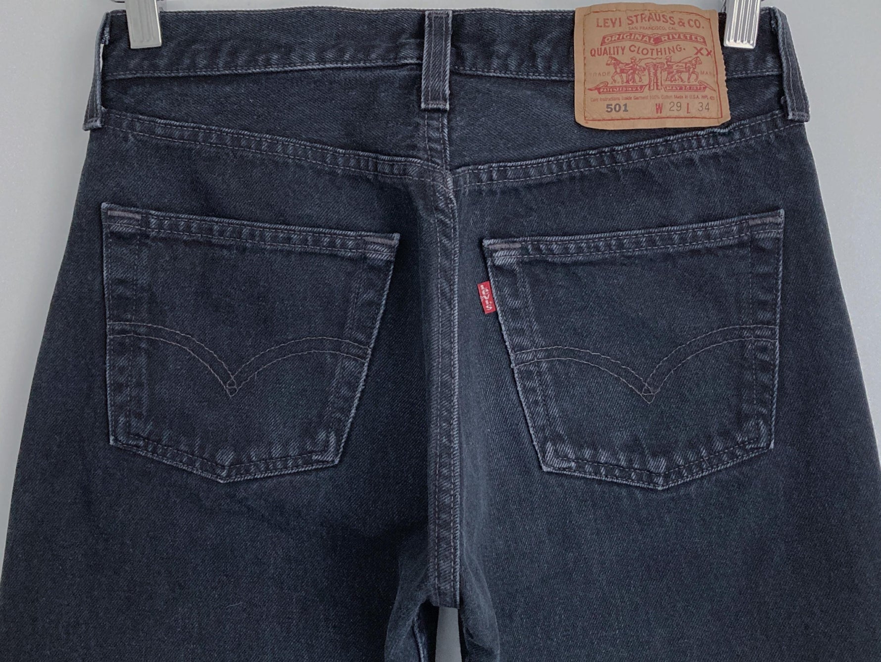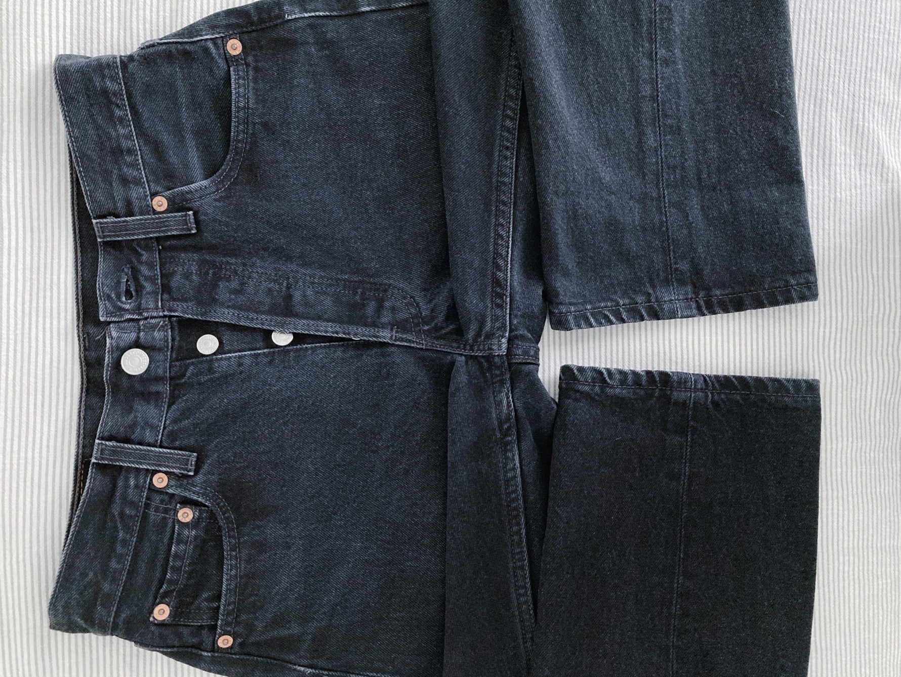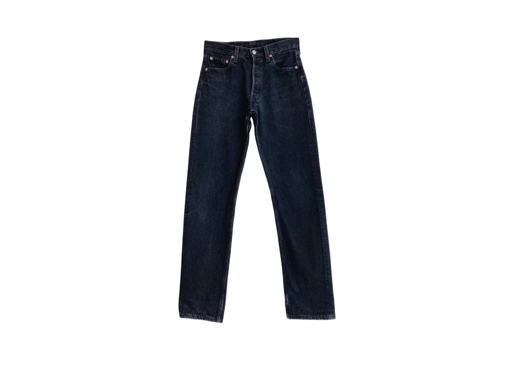 90s, noir, coupe mixte, made in USA. Taille : 37 cm, Hauteur taille : 28 cm, Hanches : 53,5 cm, Cuisse : 26,5 cm, Longueur totale : 109 cm, Ourlets : 19,5 cm, Longueur entrejambe : 85 cm