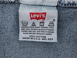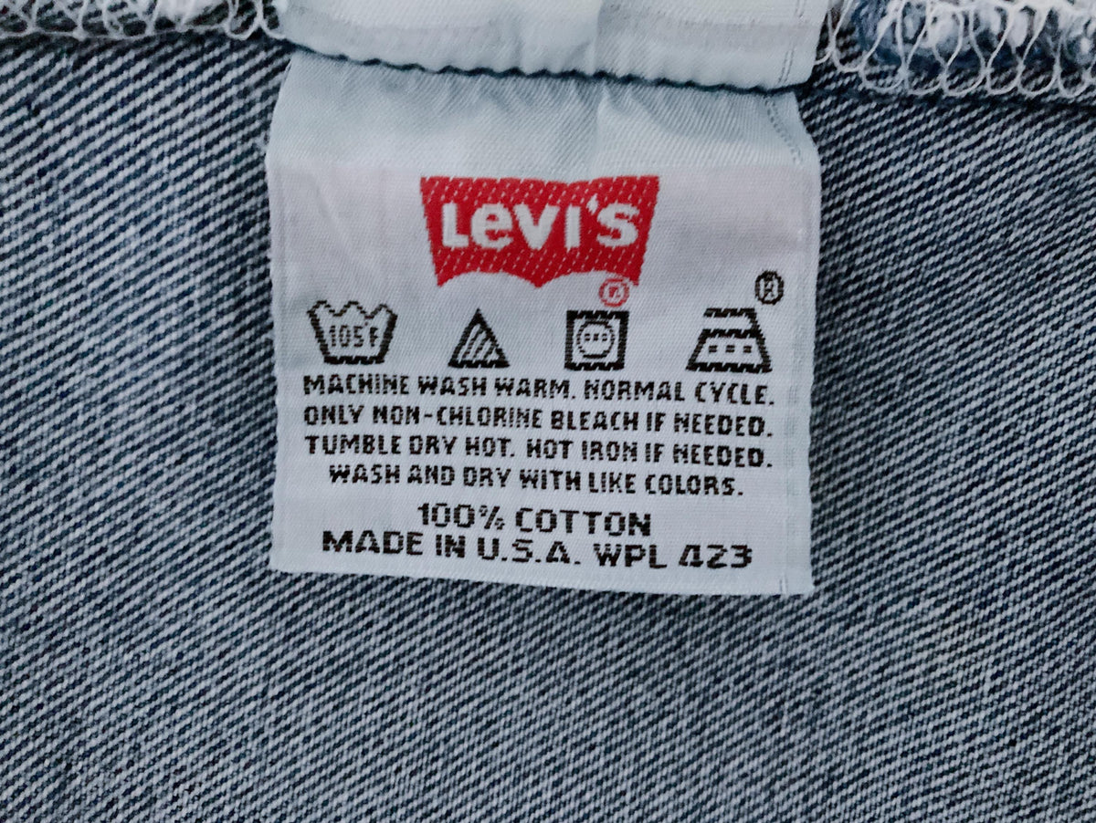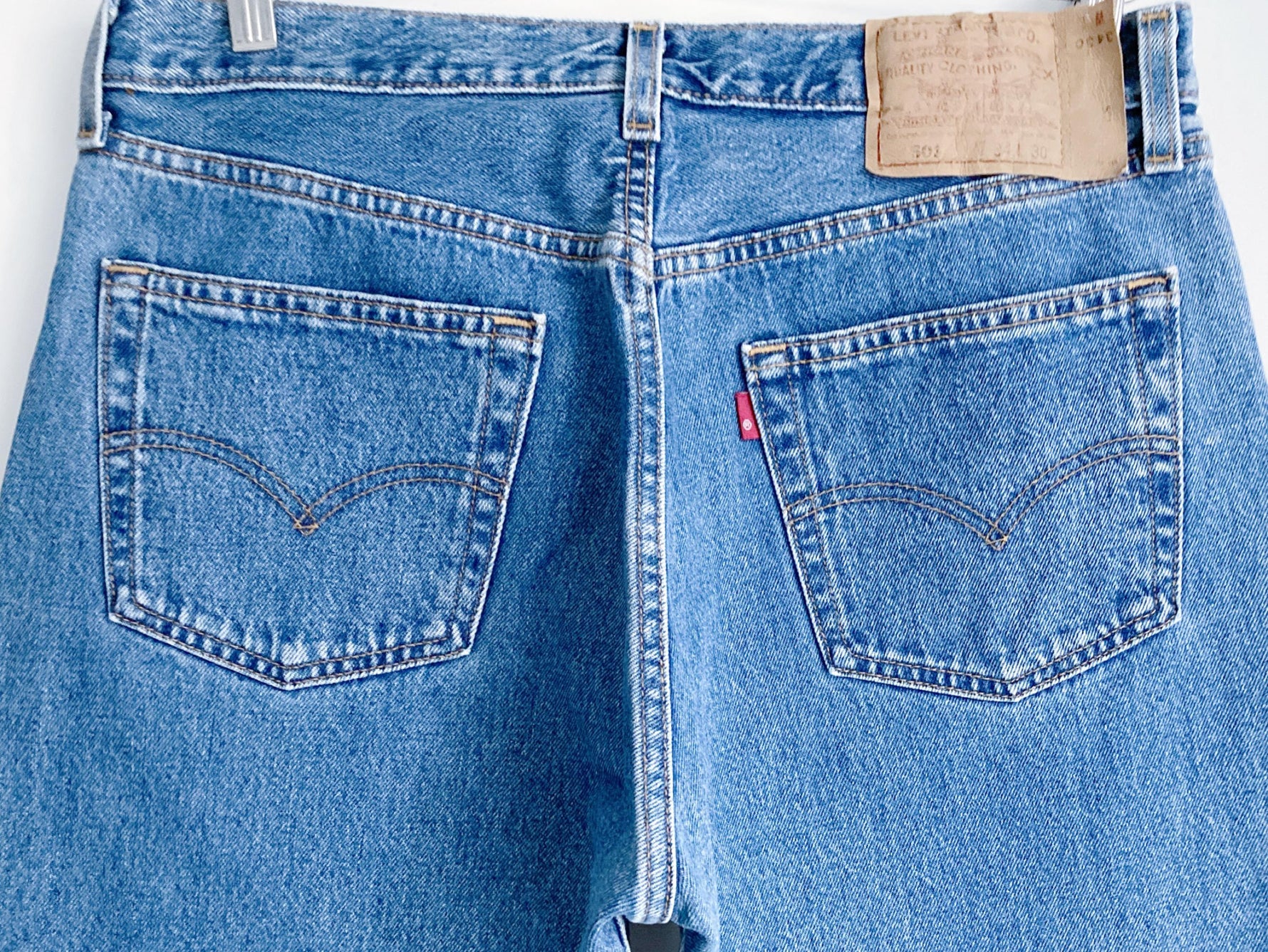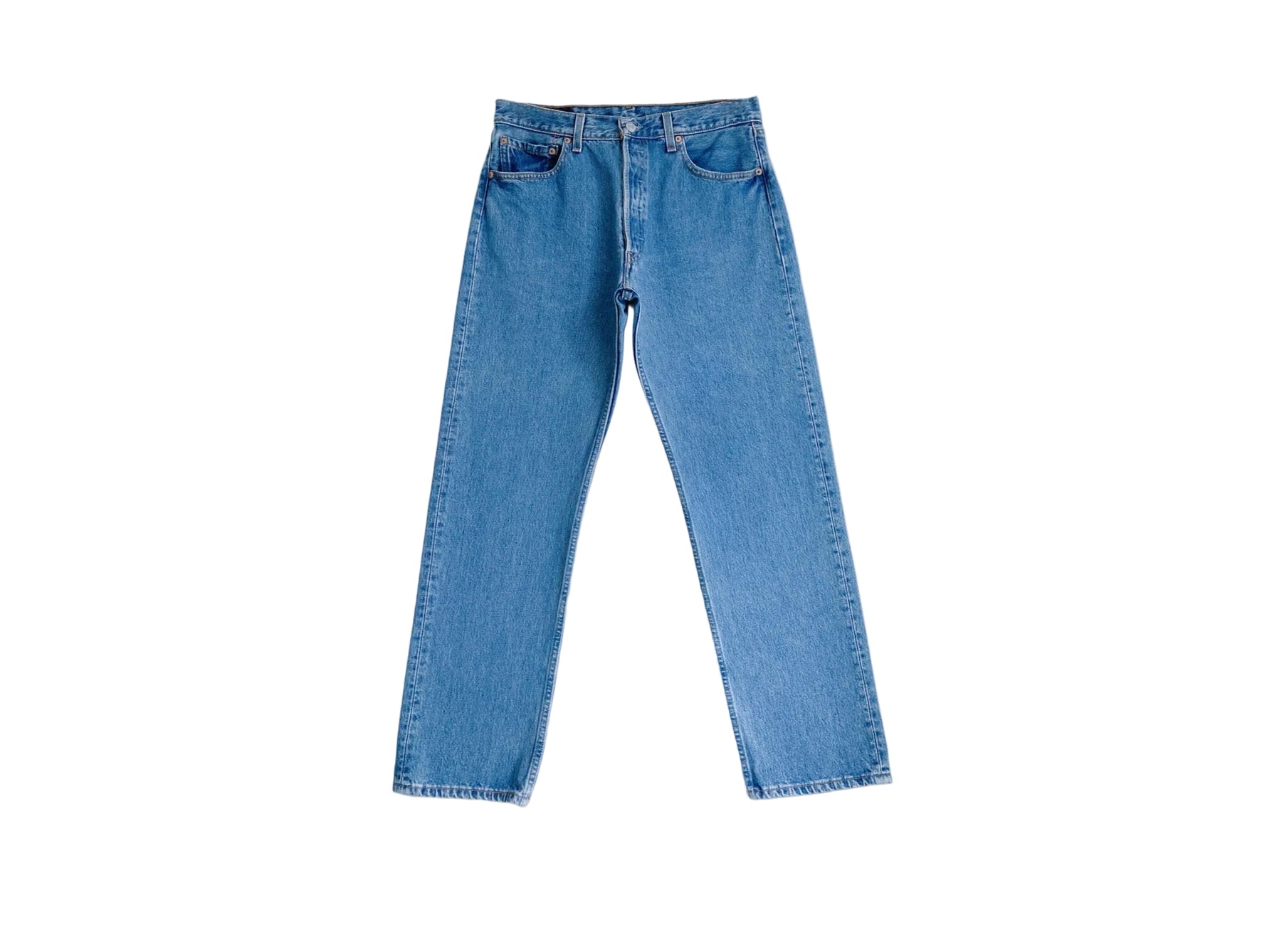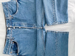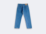 90s, coupe mixte, bleu moyen, made in USA. Taille : 40,5 cm, Hauteur taille : 30,5 cm, Hanches : 57 cm, Cuisse : 29 cm, Longueur totale : 101,5 cm, Ourlets : 20,5 cm, Longueur entrejambe : 75,5 cm
