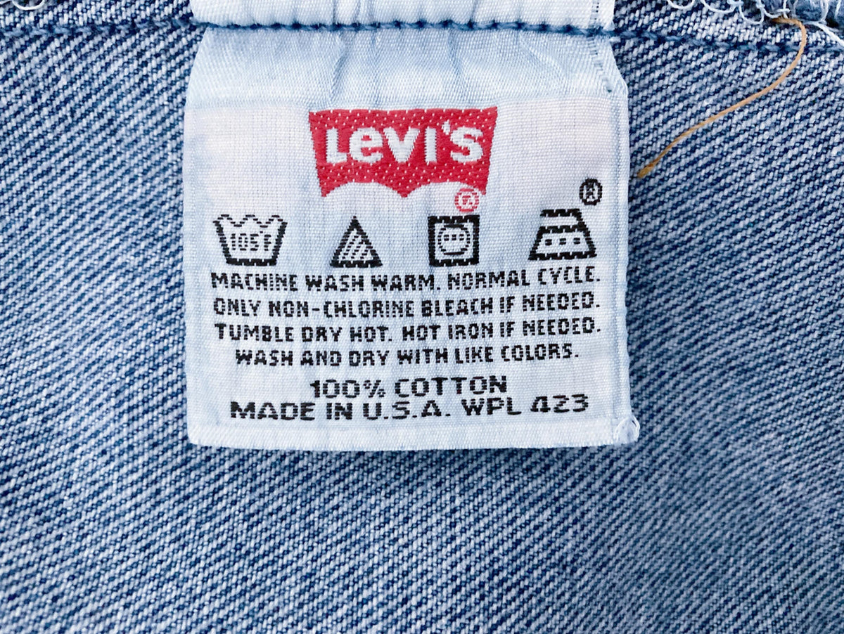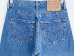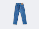 90s, coupe mixte, bleu moyen, made in USA. Taille : 34,5 cm, Hauteur taille : 27,5 cm, Hanches : 51 cm, Cuisse : 26 cm, Longueur totale : 100,5 cm, Ourlets : 19 cm, Longueur entrejambe : 76 cm