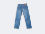 90s, coupe mixte, bleu clair, made in USA. Taille : 38 cm, Hauteur taille : 29 cm, Hanches : 54,5 cm, Cuisse : 28 cm, Longueur totale : 101,5 cm, Ourlets : 19 cm, Longueur entrejambe : 76 cm