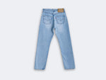 90s, coupe femme, bleu clair, made in USA. Taille : 38 cm, Hauteur taille : 29 cm, Hanches : 54,5 cm, Cuisse : 29 cm, Longueur totale : 101,5 cm, Ourlets : 19 cm, Longueur entrejambe : 76 cm