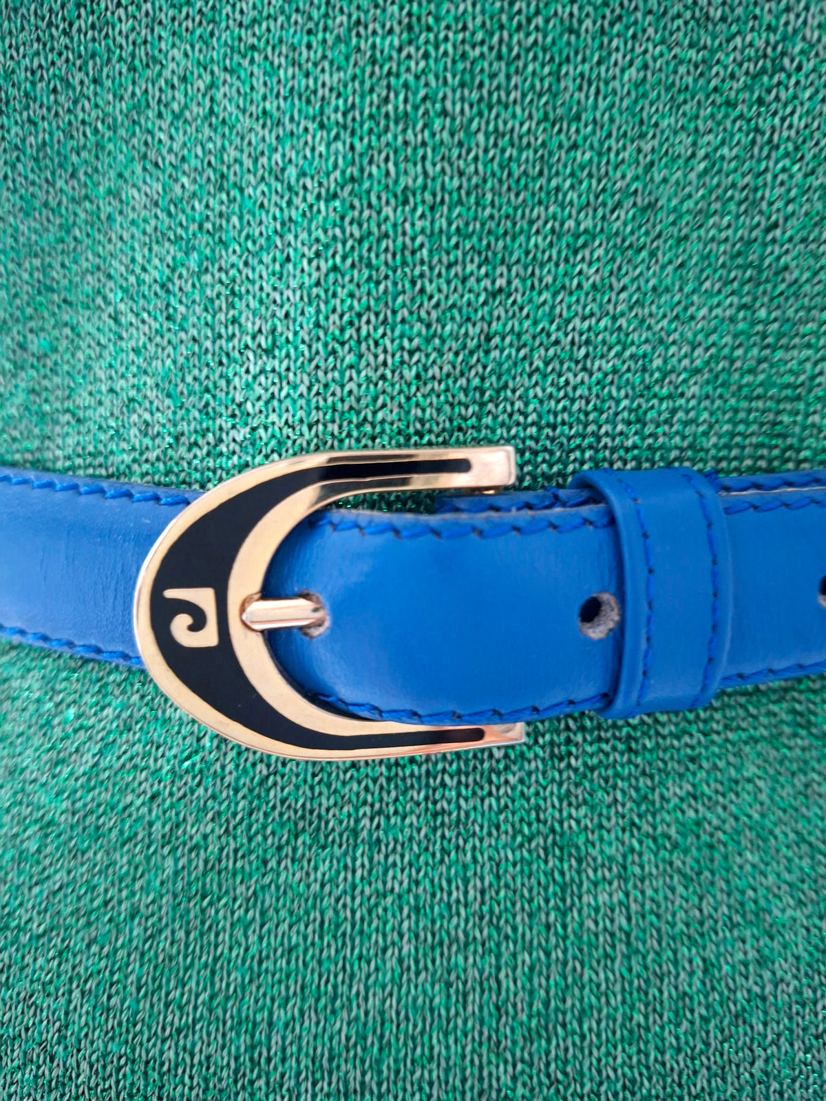 Prix unitaire parCeinture en cuir Pierre Cardin Made in France. Boucle en métal doré et noir au logo Cardin. Longueur totale 80cm Largeur 20mm.Convient aux tailles 34/36