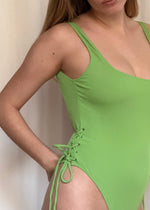 Maillot de bain une pièce à encolure carrée, dos nu et échancré.