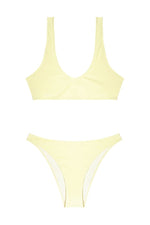 Culotte de bikini basse moyennement couvrante en Lycra côtelé doux et confortable.