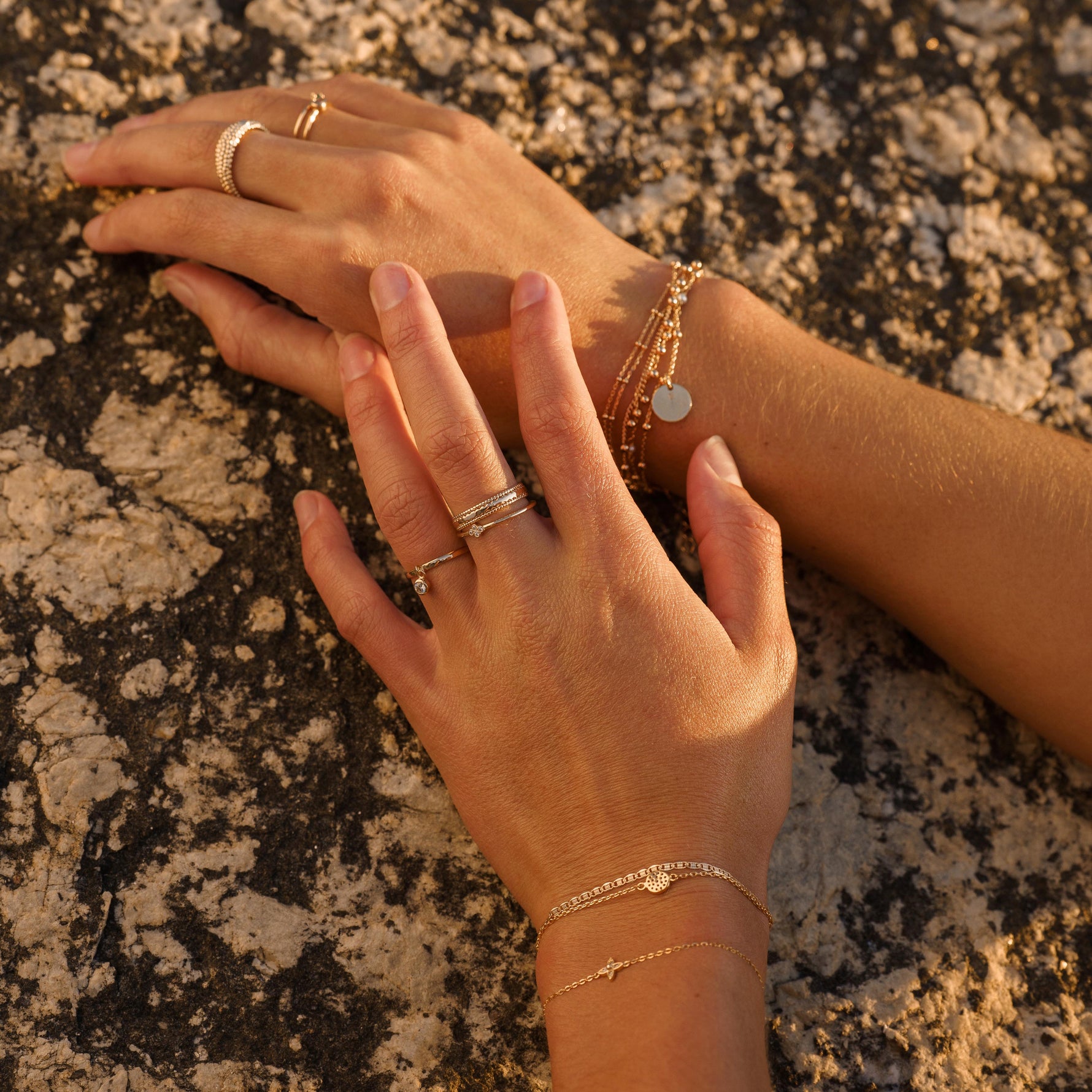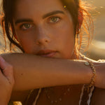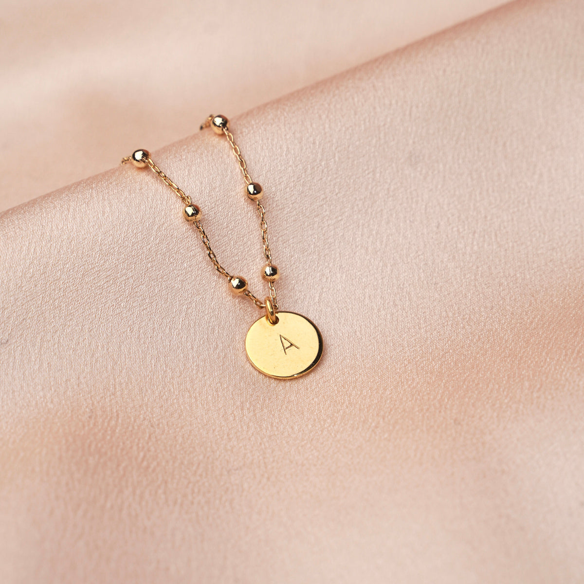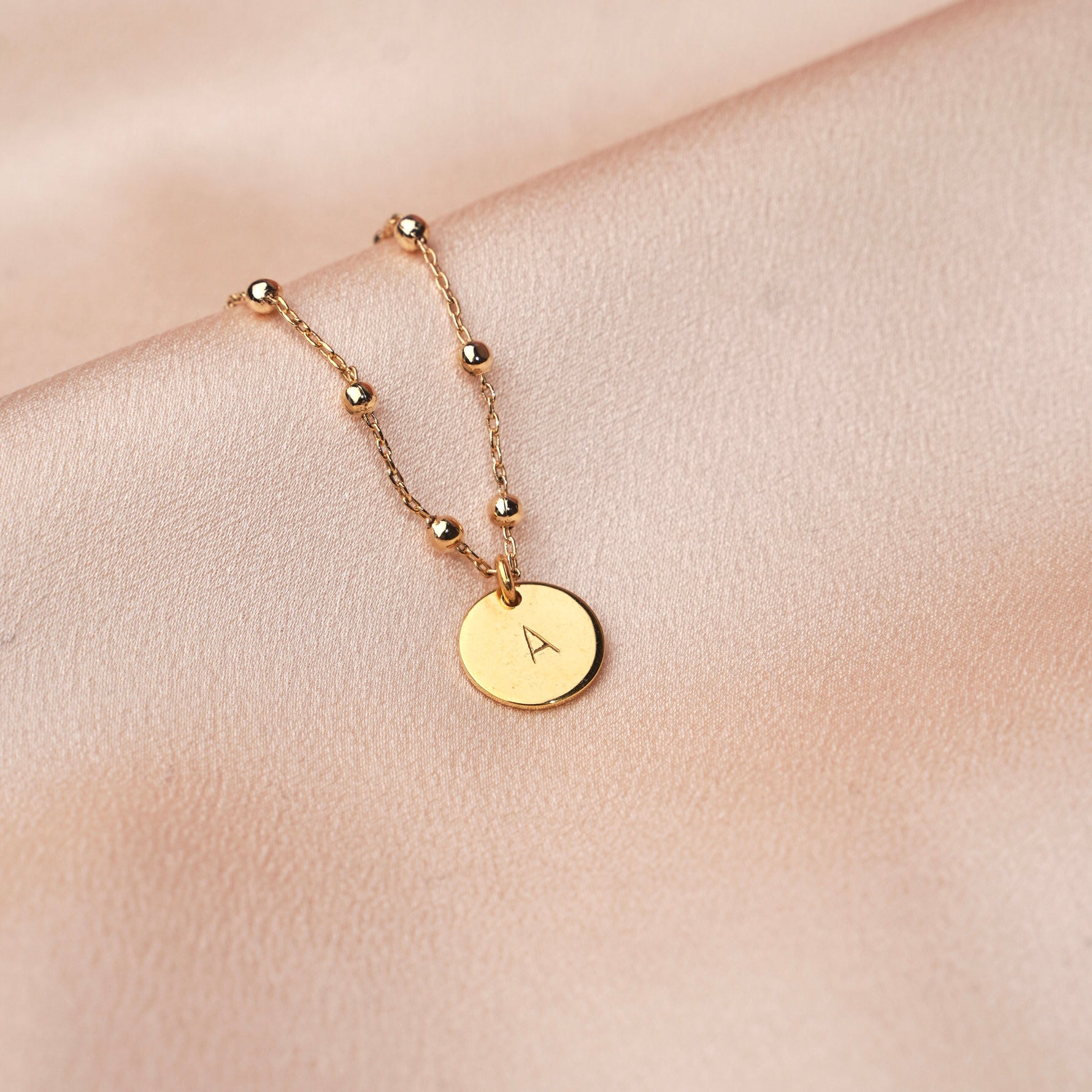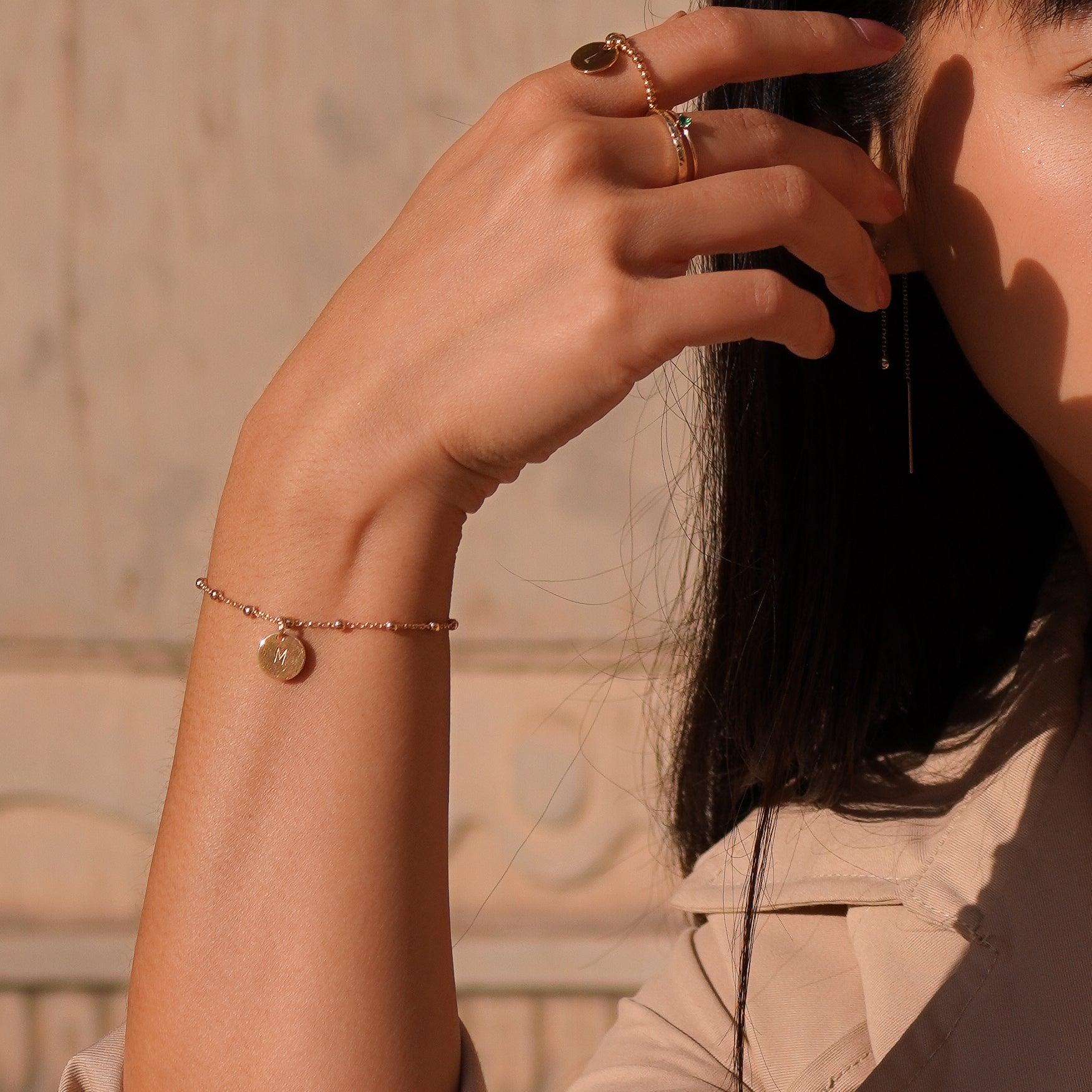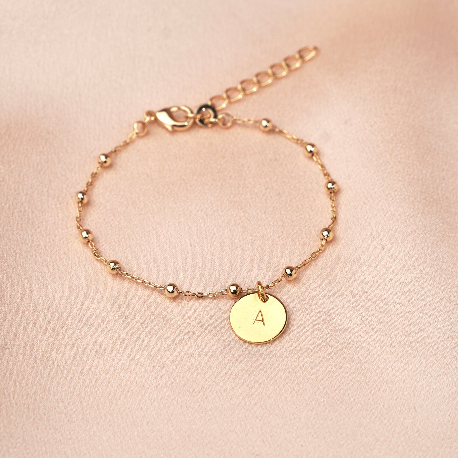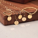 Bracelet en plaqué or 18k. La médaille du bracelet est personnalisable avec la gravure d'une lettre estampée à la main.
