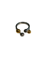 Anillo de acero inoxidable de mezcla dorado y plateado con bolas doradas y plateadas y apertura anterior. Estilo Vintage