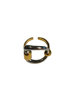 Anillo de acero inoxidable de mezcla dorado y plateado con forma de estribo y apertura posterior. Estilo Vintage