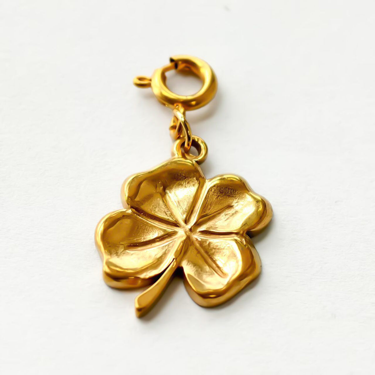 Prix unitaire parCharm de acero inoxidable hipoalergénico bañado en oro de un trébol de 4 hojas de la buena suerte. Ideal para personalizar tus collares y hacer mix and match