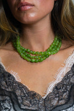 Gargantilla de tres tiras de cuentas de cristal verdes, hecha a mano. Original y elegante, ideal para llevar de invitada a una boda, fiesta, bautizo, pedida, etc. Elegante y clásica.
