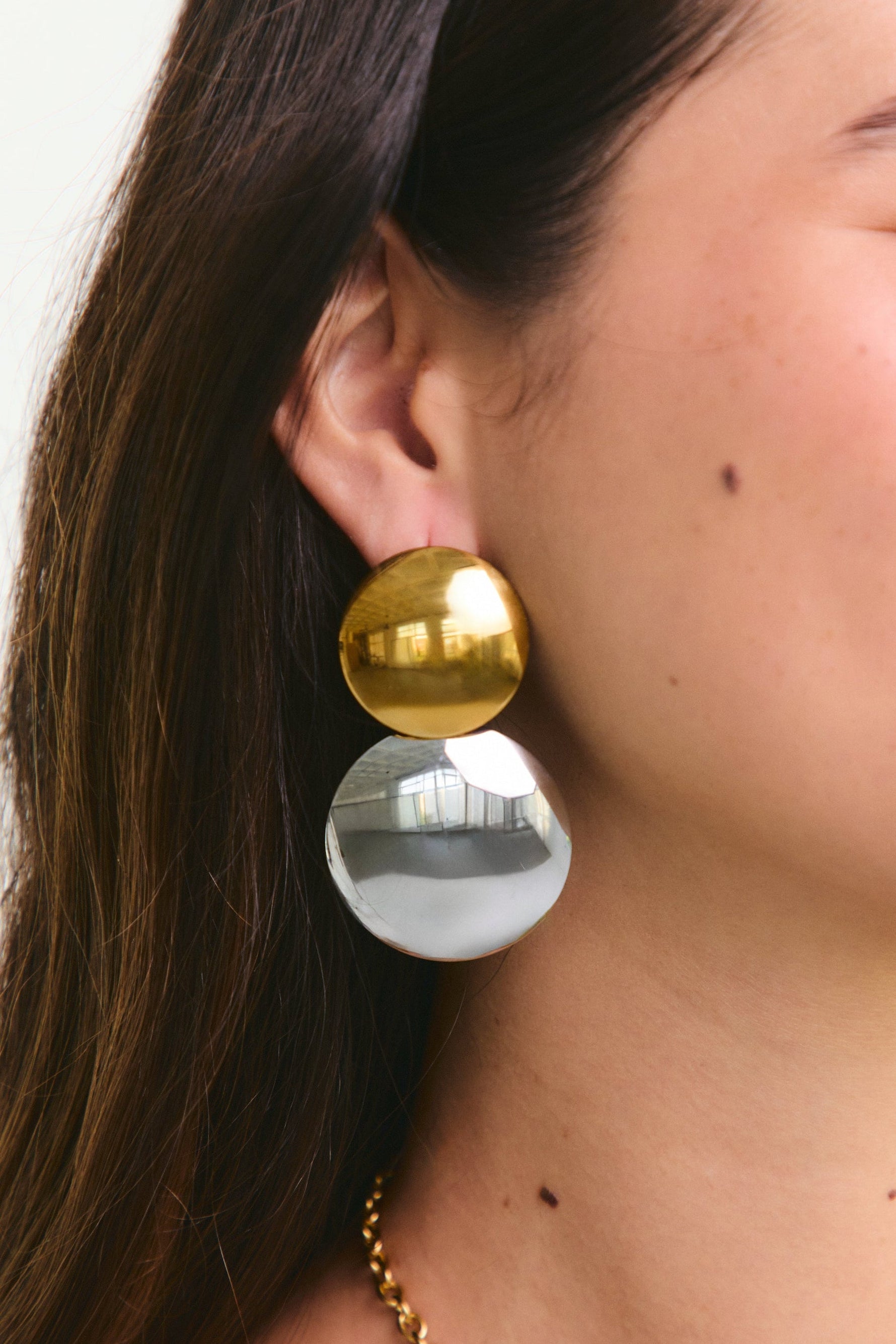 Pendientes dorados de acero inoxidable hipoalergénico y bañado en oro de dos círculos