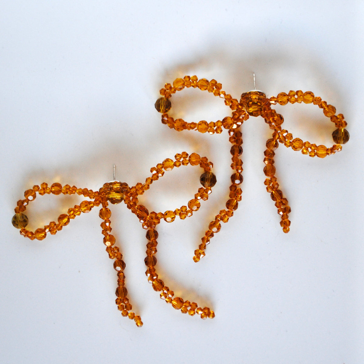 Pendientes de cuentas/bolas color marrón semitransparente con forma de lazo. Estilo boho chic. Ideales tanto para el día a día como para fin de año, navidad, fiesta, cena, boda, comunión, invitada... Diferentes y originales