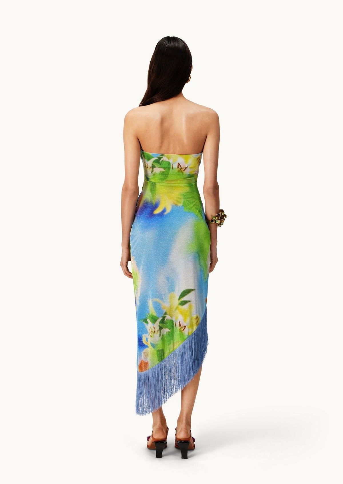 Alana, par où commencer ? C'est une icône ! Bustier, avec des franges aux l'extrémités pour finir une jupe dégradée coupée en biais.
