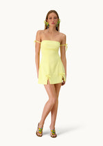 Nina, l'incontournable de la saison. Avec ses épaules dénudées, cette petite robe est le bijou de votre garde-robe estivale. Ornée de délicats petits noeuds, elle ajoute une touche de charme irrésistible à votre allure.