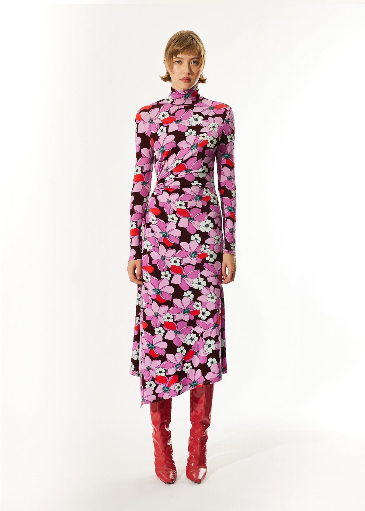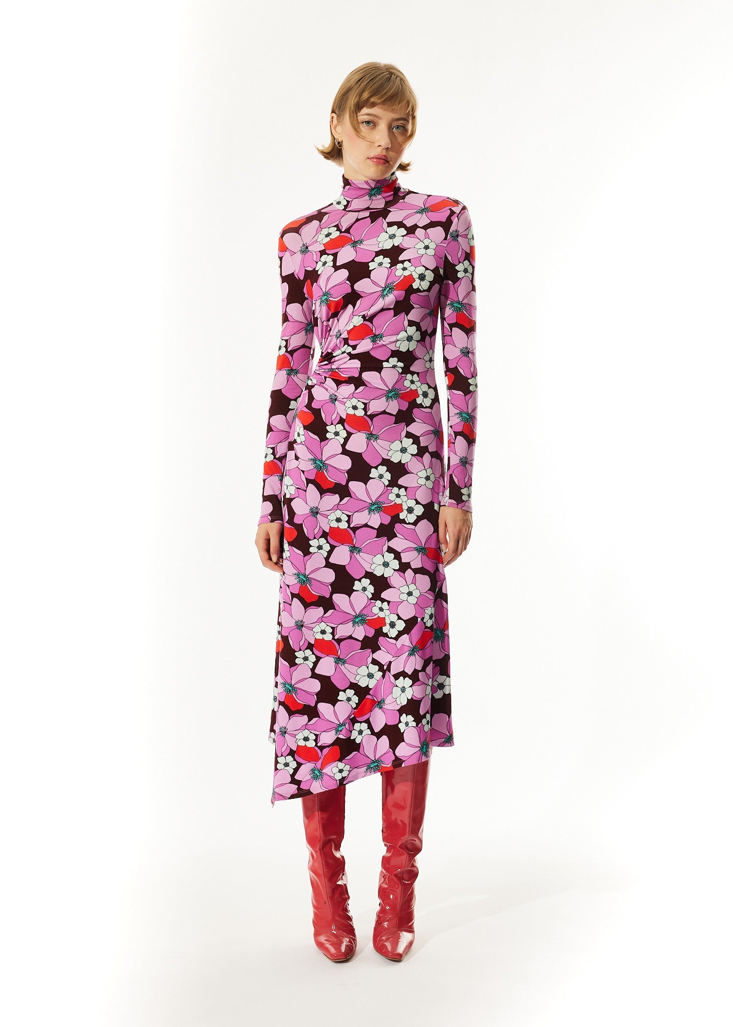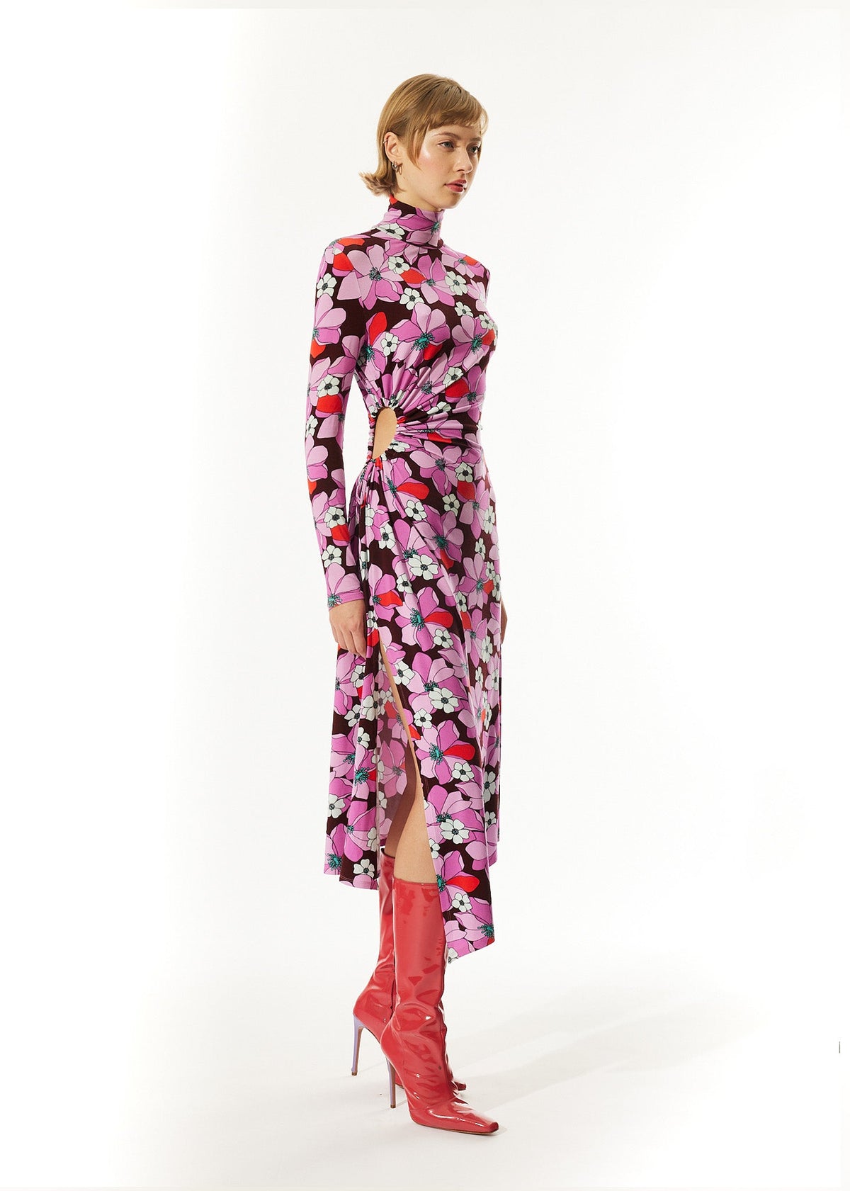 Raja est LA robe pour toutes les occasions de cette saison. Elle a été coupée à la perfection, son drapé lui permet de s'adapter sans effort à votre morphologie. Raja vous aide a attirer tout les regards sur et hors la piste de danse. La fente dévoile un bout de jambe !