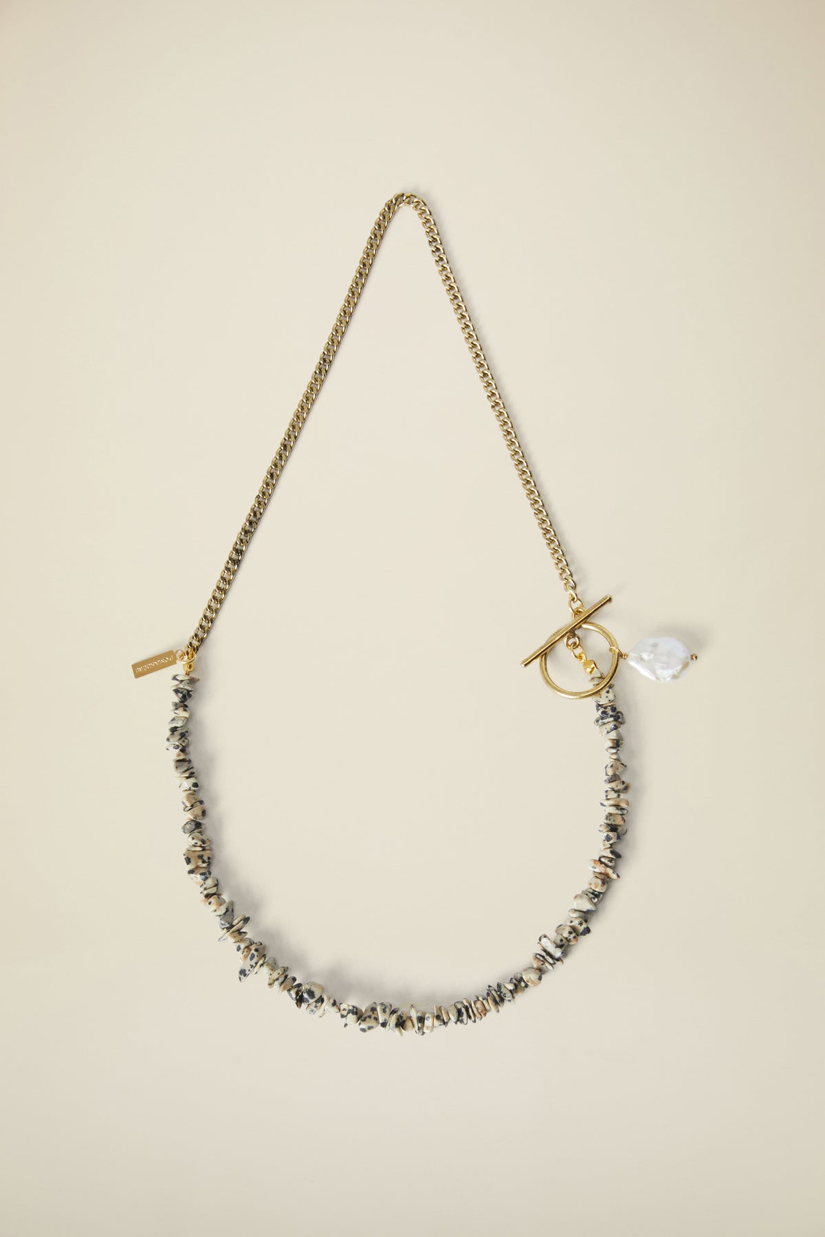Collier en laiton avec perles naturelles et pierre jaspe dalmatien