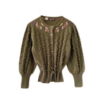 Maille popcorn pompons brodés, brodé de fleurs roses et lilas.