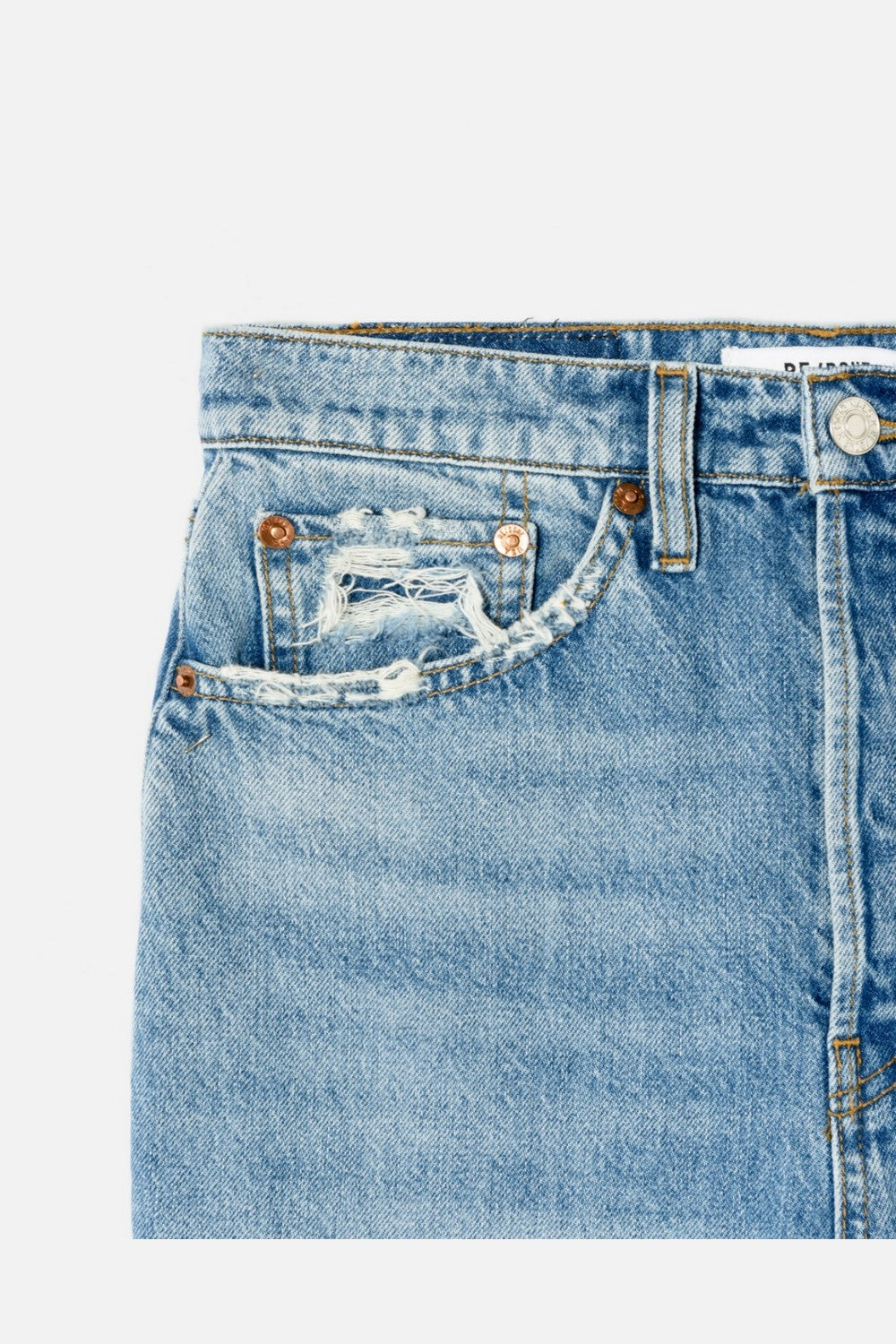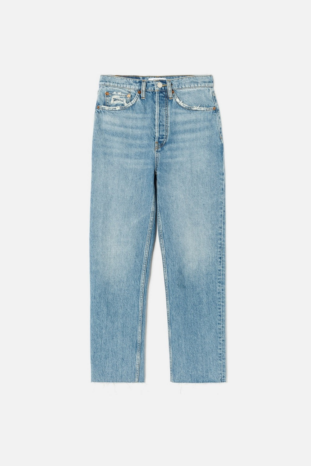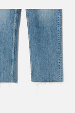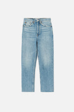 The Ultra High Rise Stove Pipe in Worn Blue. Version of the classic 70s-inspired straight leg jean with a higher rise