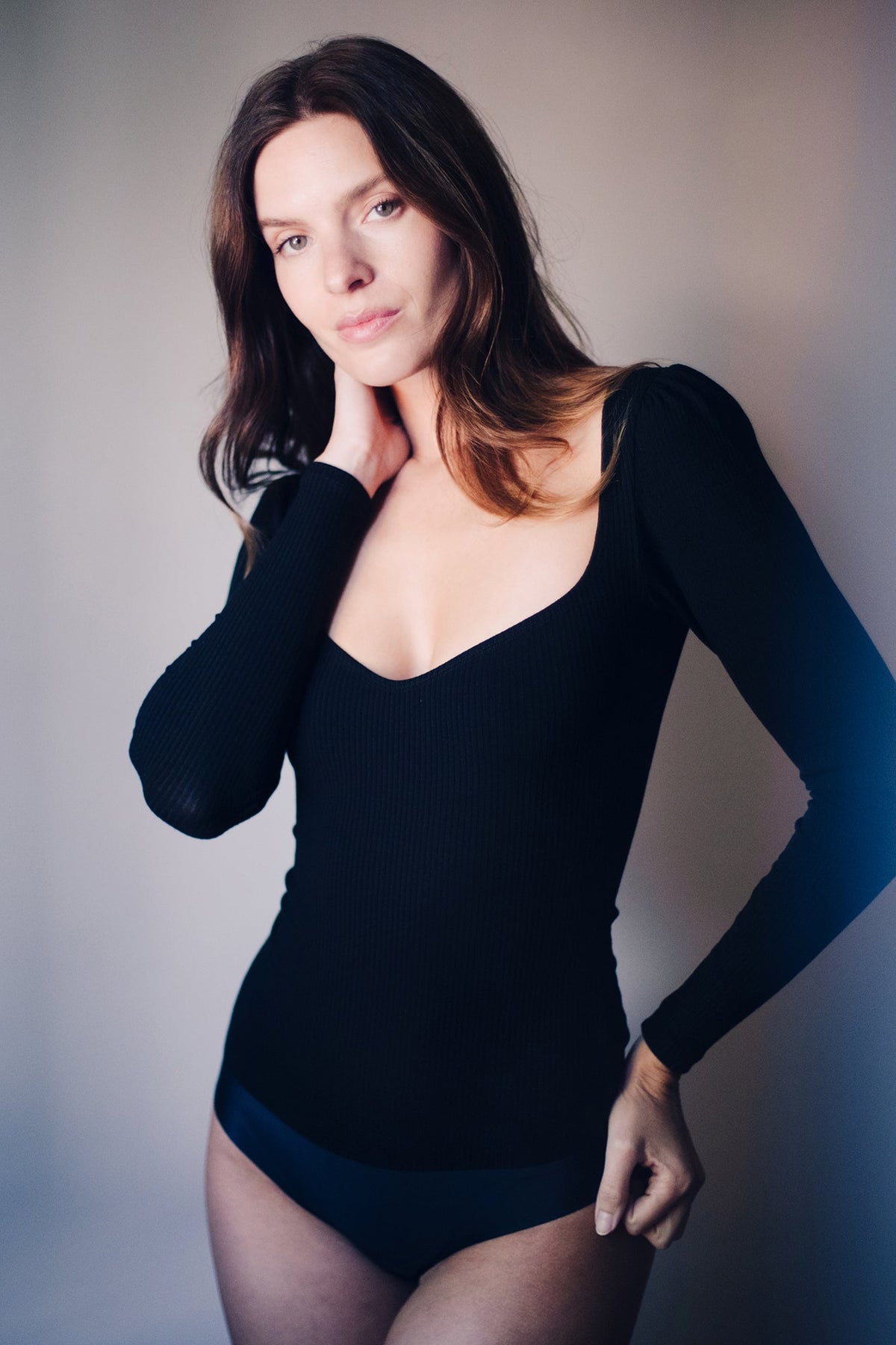 Maria, c'est votre coup de cœur depuis des années : une encolure cœur qui sublime toutes les poitrines, des épaules légèrement froncées qui donnent de l'allure et des manches longues qui élancent la silhouette. Quant à la partie culotte, elle se fait très vite oublier : fine et douce, la microfibre offre un confort absolu, et l'absence de couture la rend invisible sous tous vos bas.