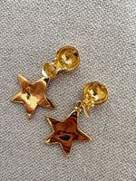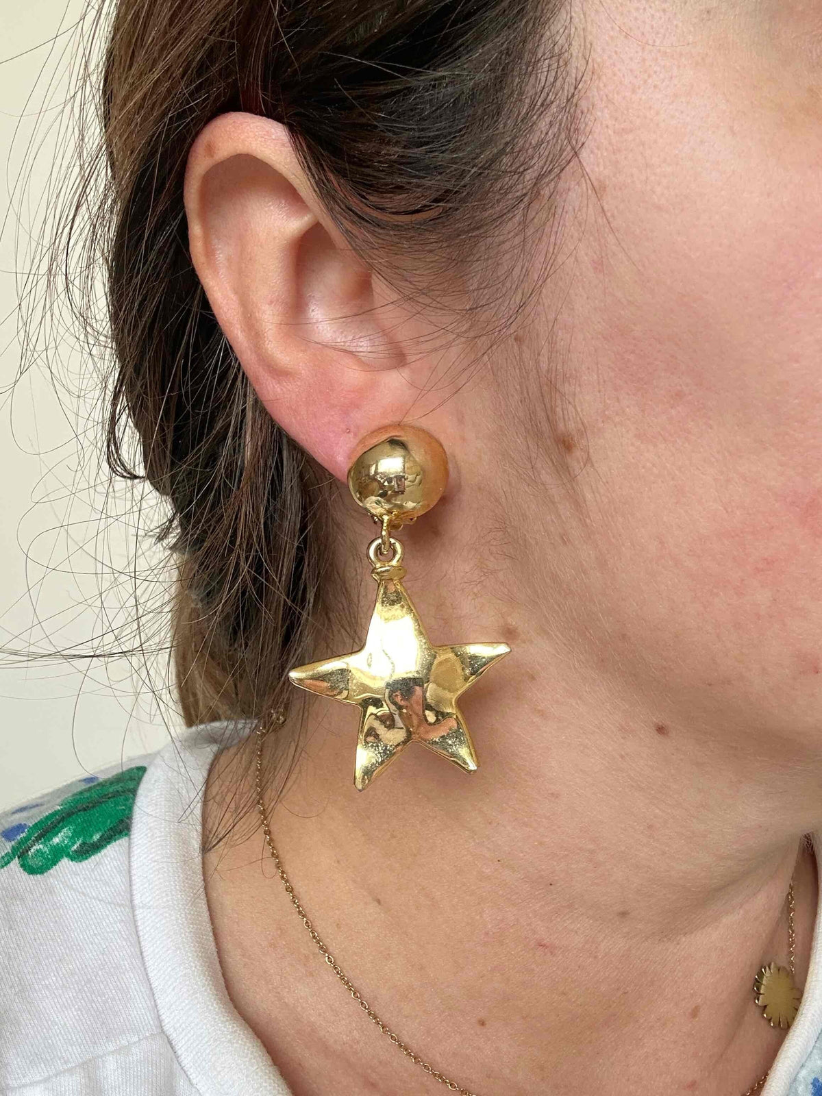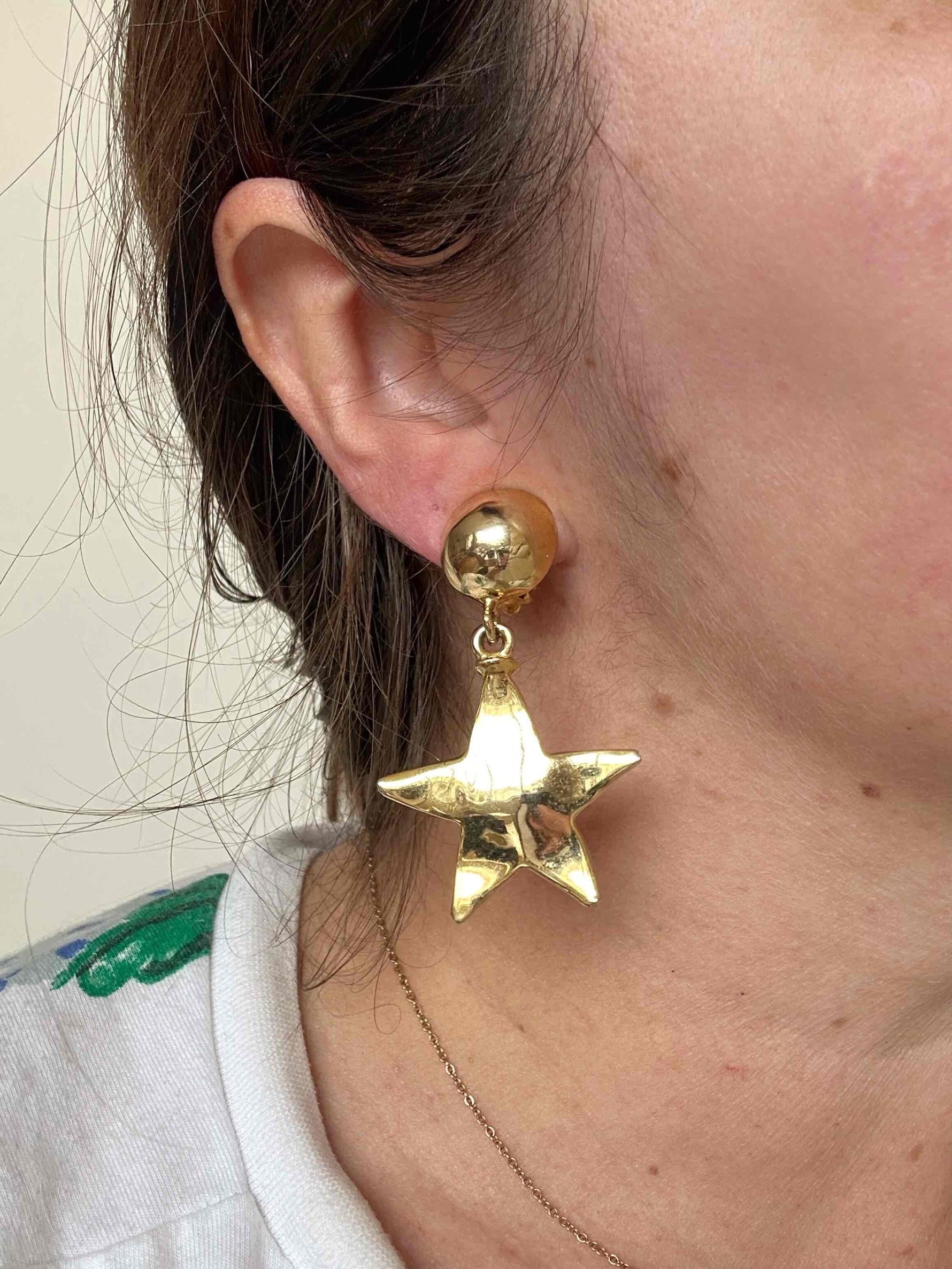 Prix unitaire parBoucles d’oreilles clips étoiles, en laiton plaqué or, clips dôme et pendants étoiles, longueur 6cm, années 80s.