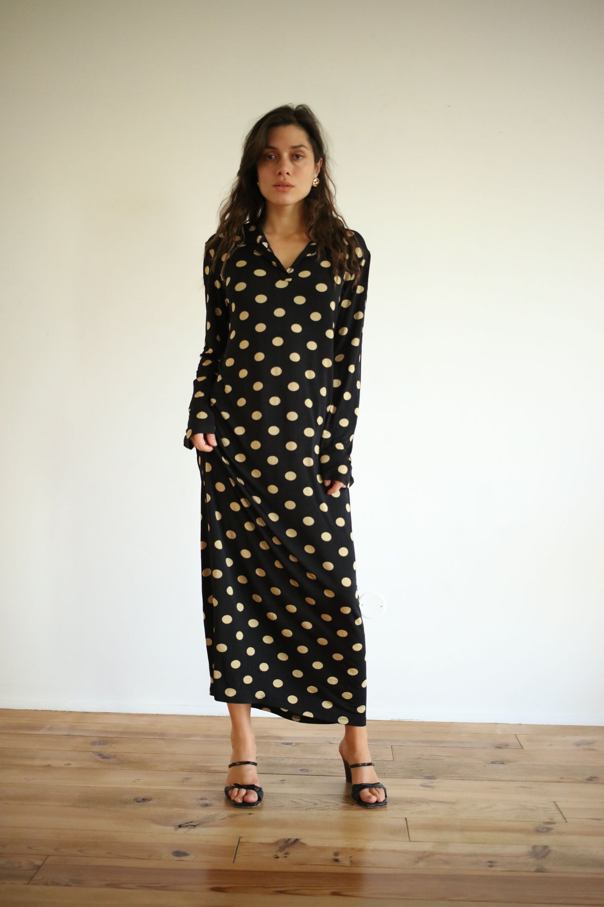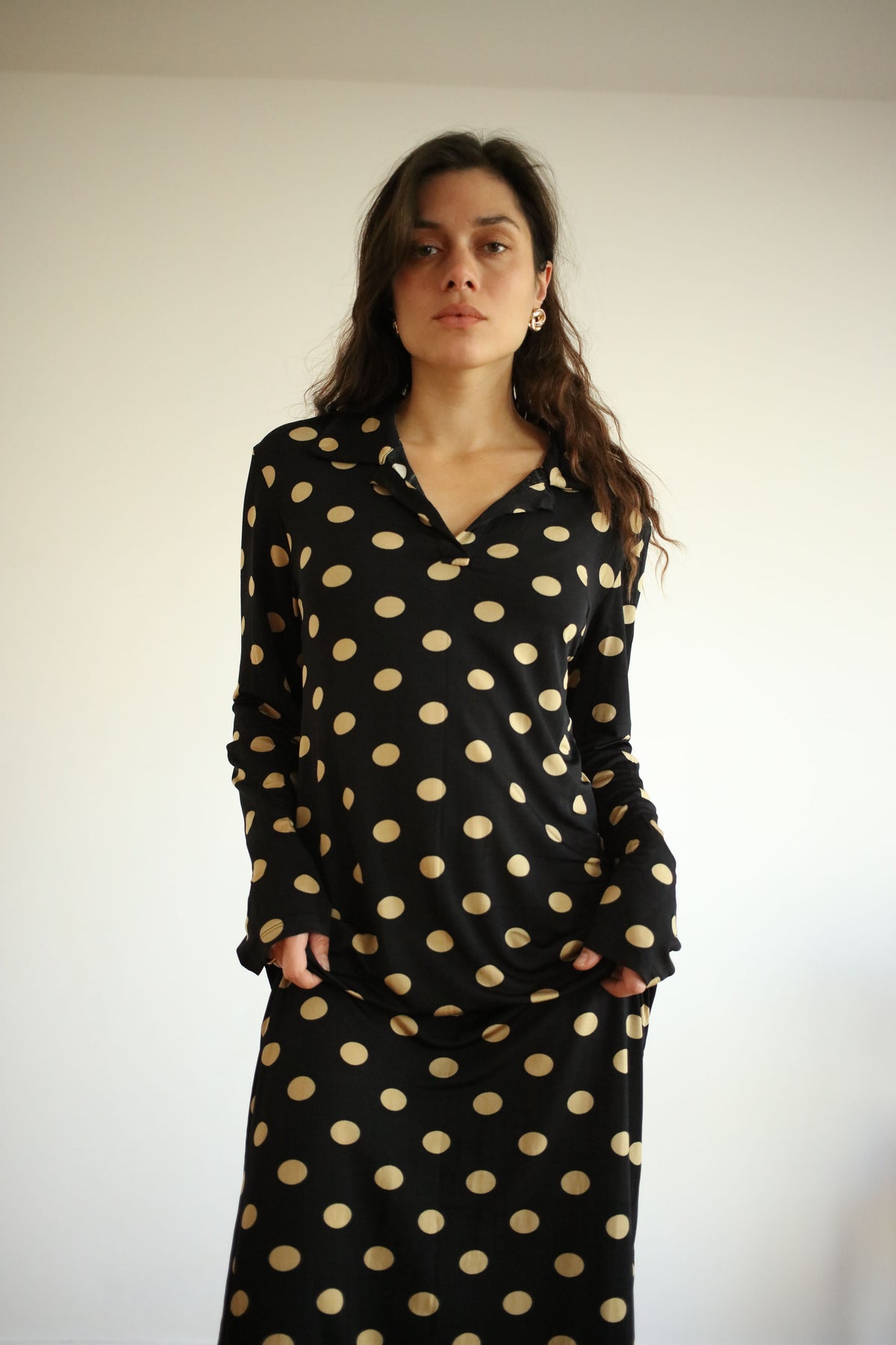 Polo polka long dress, made of italian viscose jersey, oversized fit, one size, model is 1m68